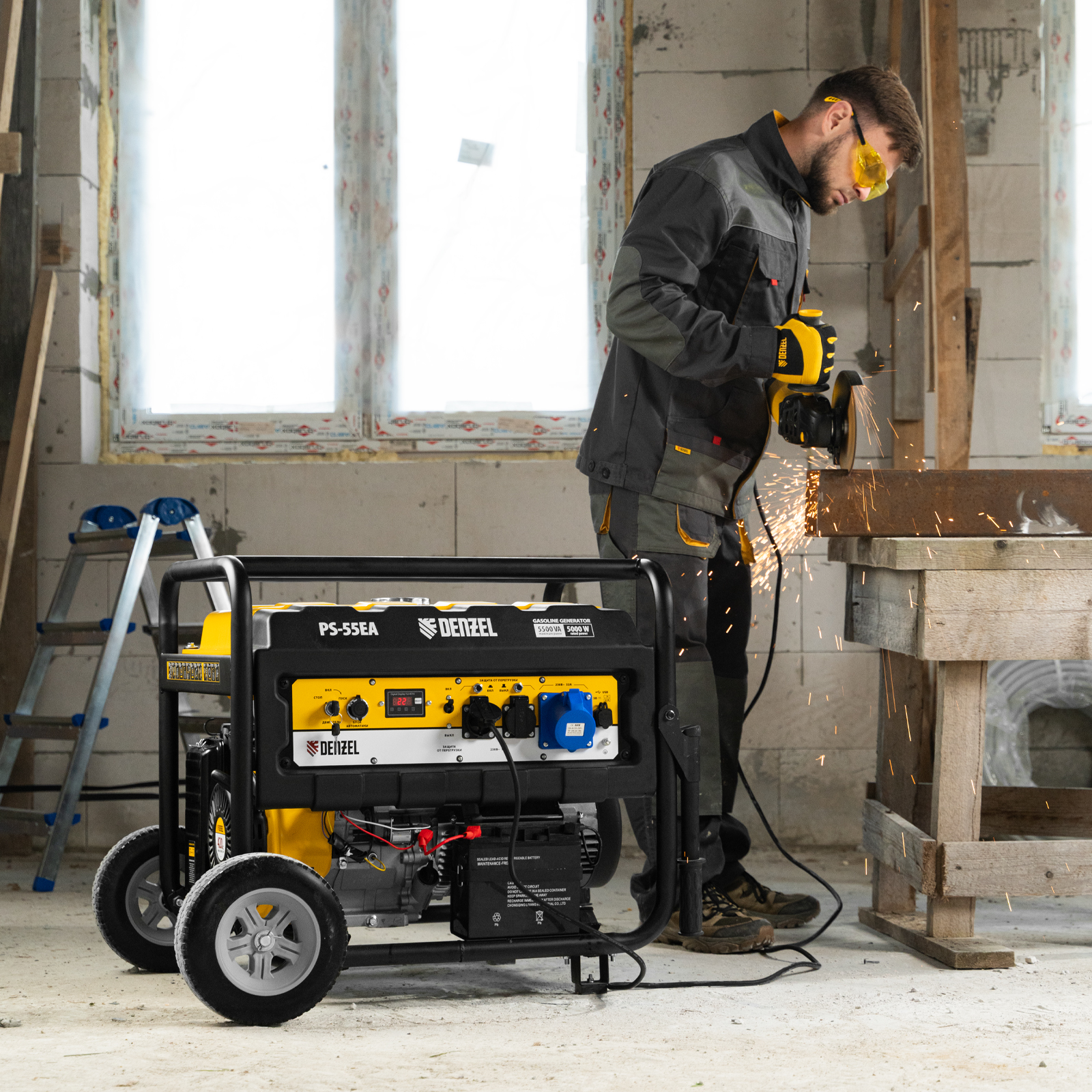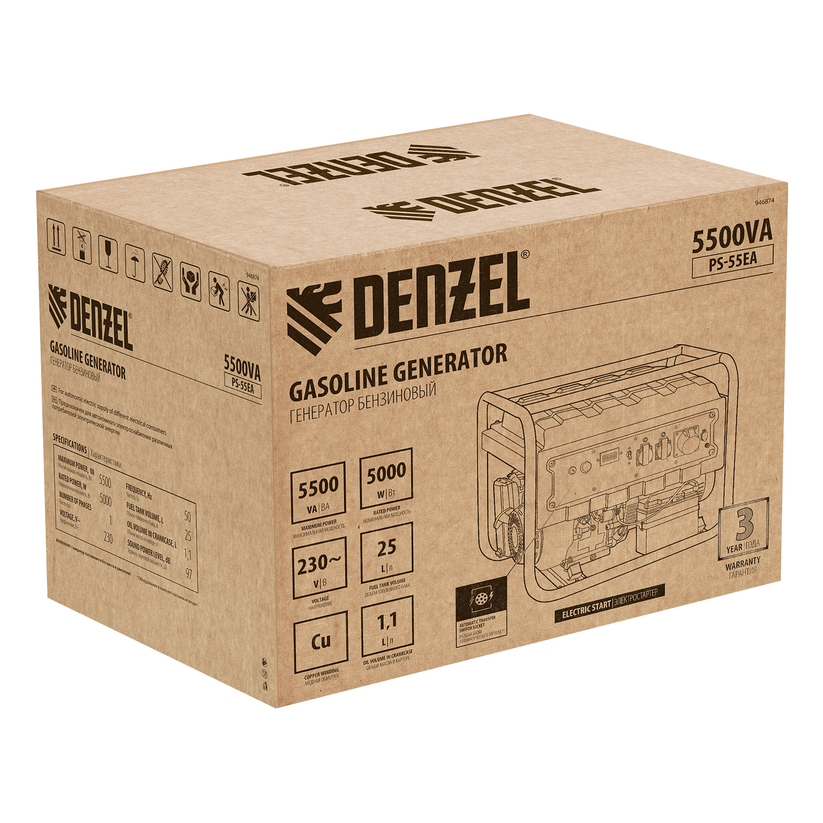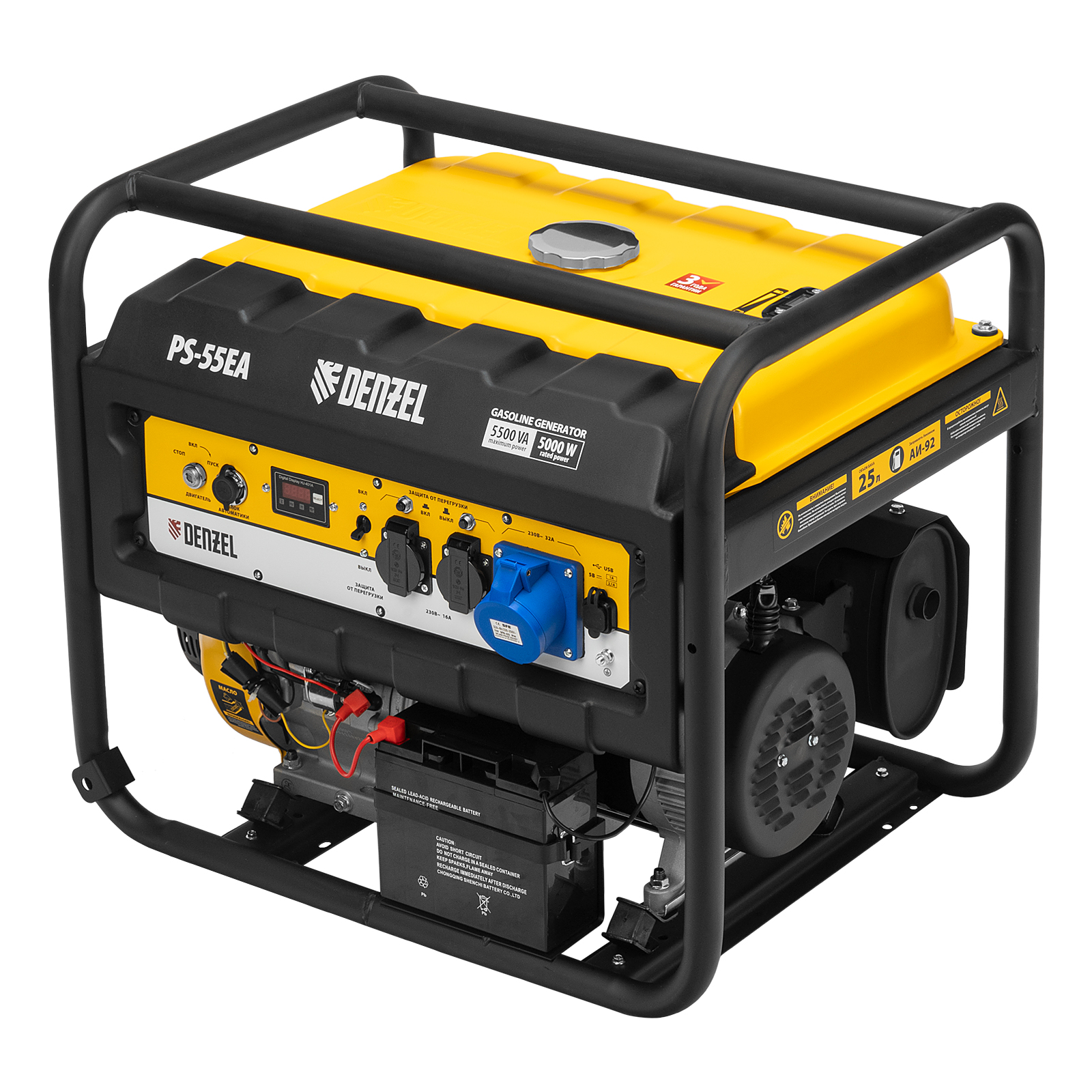 Генератор бензиновый PS 55 EA, 5.5 кВт, 230 В, 25 л, коннектор автоматики, электростартер Denzel в Екатеринбурге