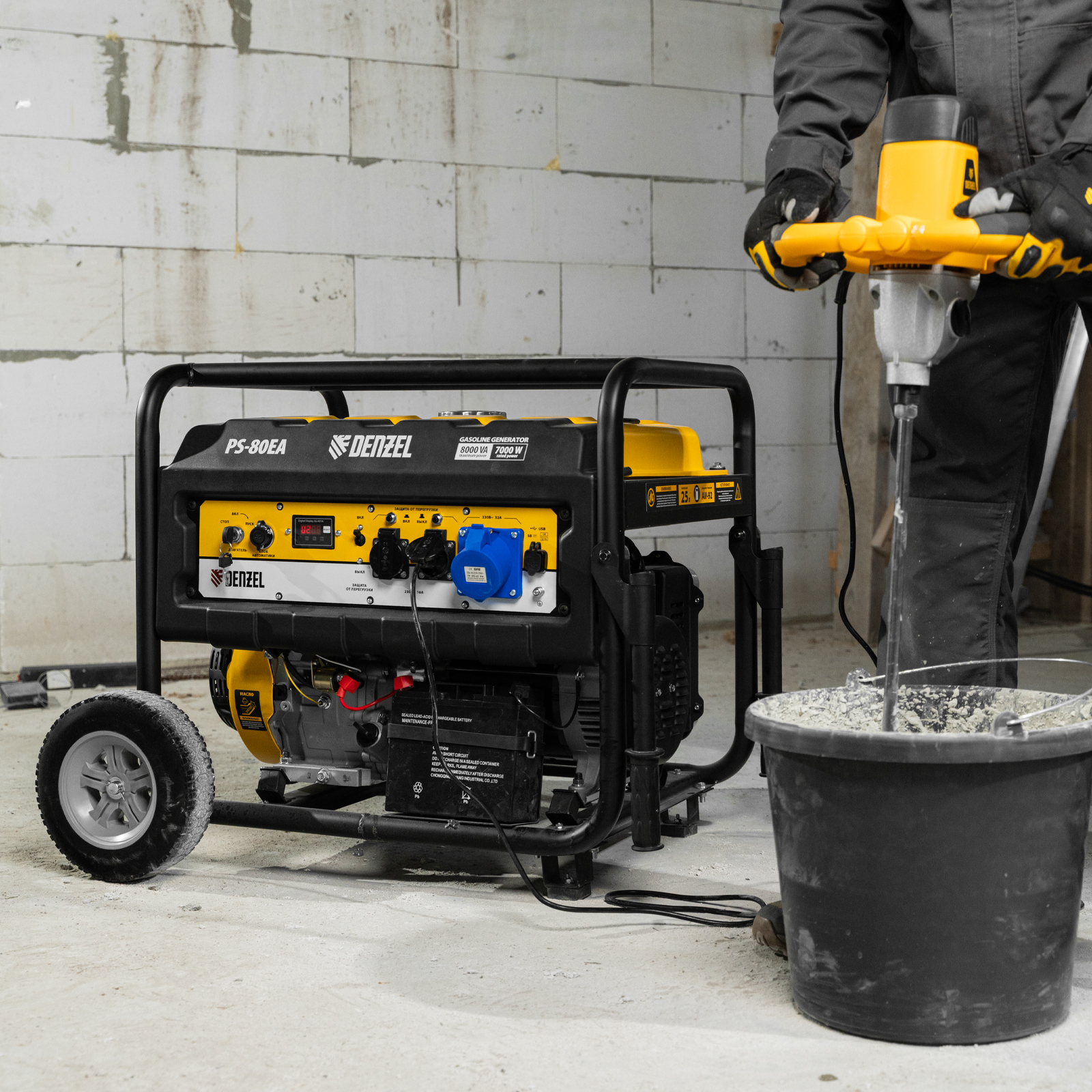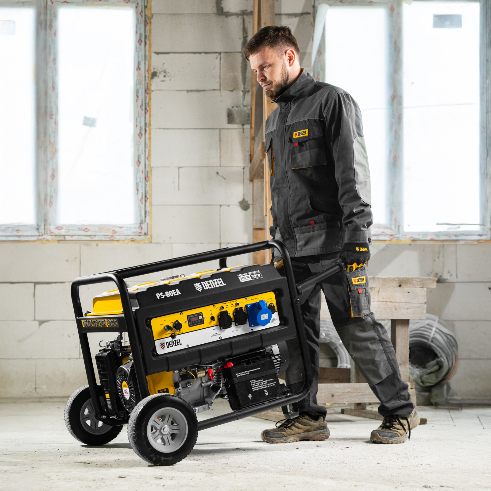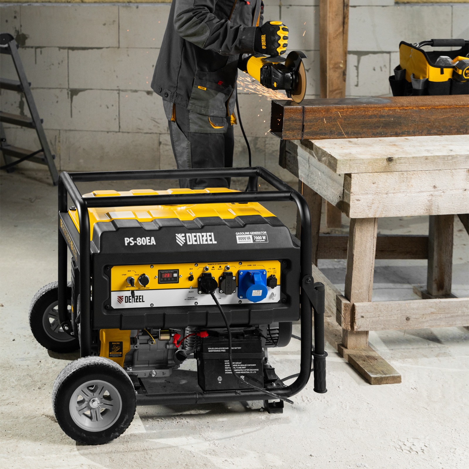 Генератор бензиновый PS 80 EA, 8.0 кВт, 230 В, 25 л, коннектор автоматики, электростартер Denzel в Екатеринбурге