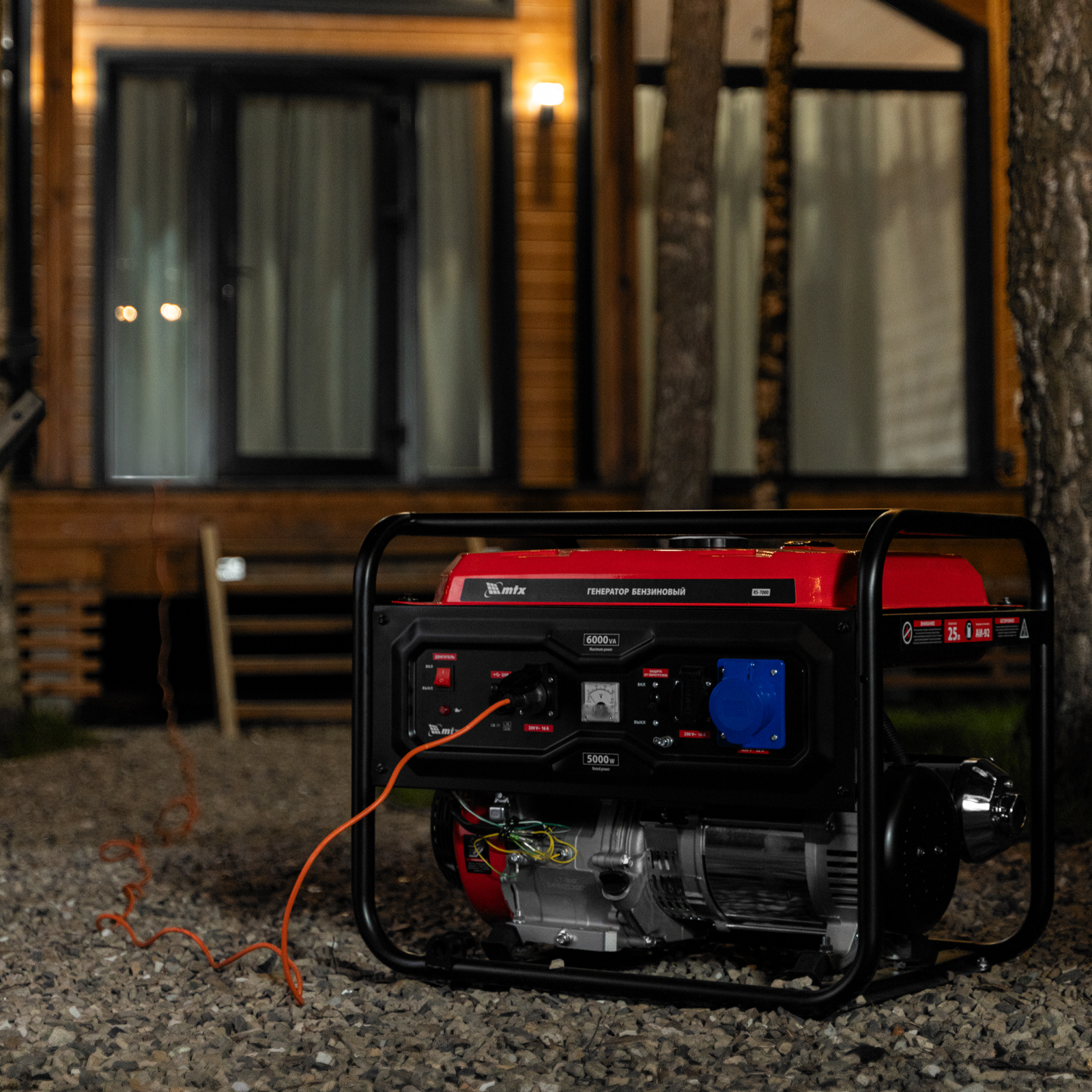 Бензиновый генератор MTX RS-7000 946135 максимальной мощностью 6 кВт, с ручным стартером, поддерживает напряжение 230 В и обеспечивает функционирование бытовой техники, электроинструмента, осветительных приборов и других потребителей в случае отсутствия электросети или перебоев в ее работе. Стабилизатор напряжения AVR защищает чувствительные приборы от поломки. Для подключения потребителей служат 2 розетки 230 В/16 А, для питания мощной техники предназначена силовая розетка 230 В/32 А. На панели управления также предусмотрен выход постоянного тока USB/TYPE-C 5 В, позволяющий заряжать смартфоны, планшеты и другие гаджеты. Генератор пригодится владельцам загородных участков.
