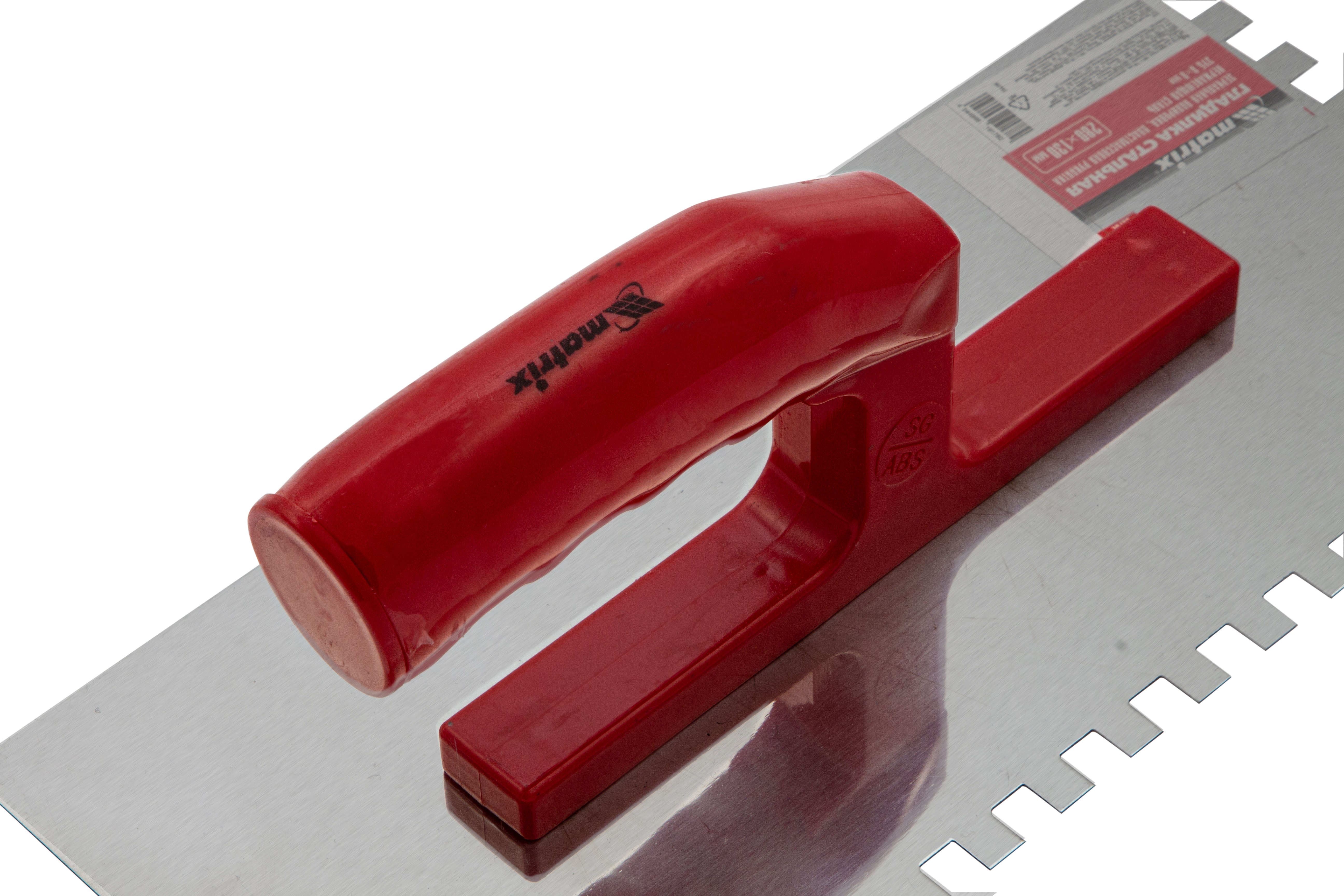 Гладилка Matrix 86782 размером 280 x 130 мм, из нержавеющей стали, с зубьями 8 x 8 мм, зеркальной полировкой и пластмассовой ручкой, пригодится любителям и частным мастерам при проведении ремонтных работ. Она позволяет равномерно наносить строительные растворы и плиточный клей на подготовленные под отделку поверхности.