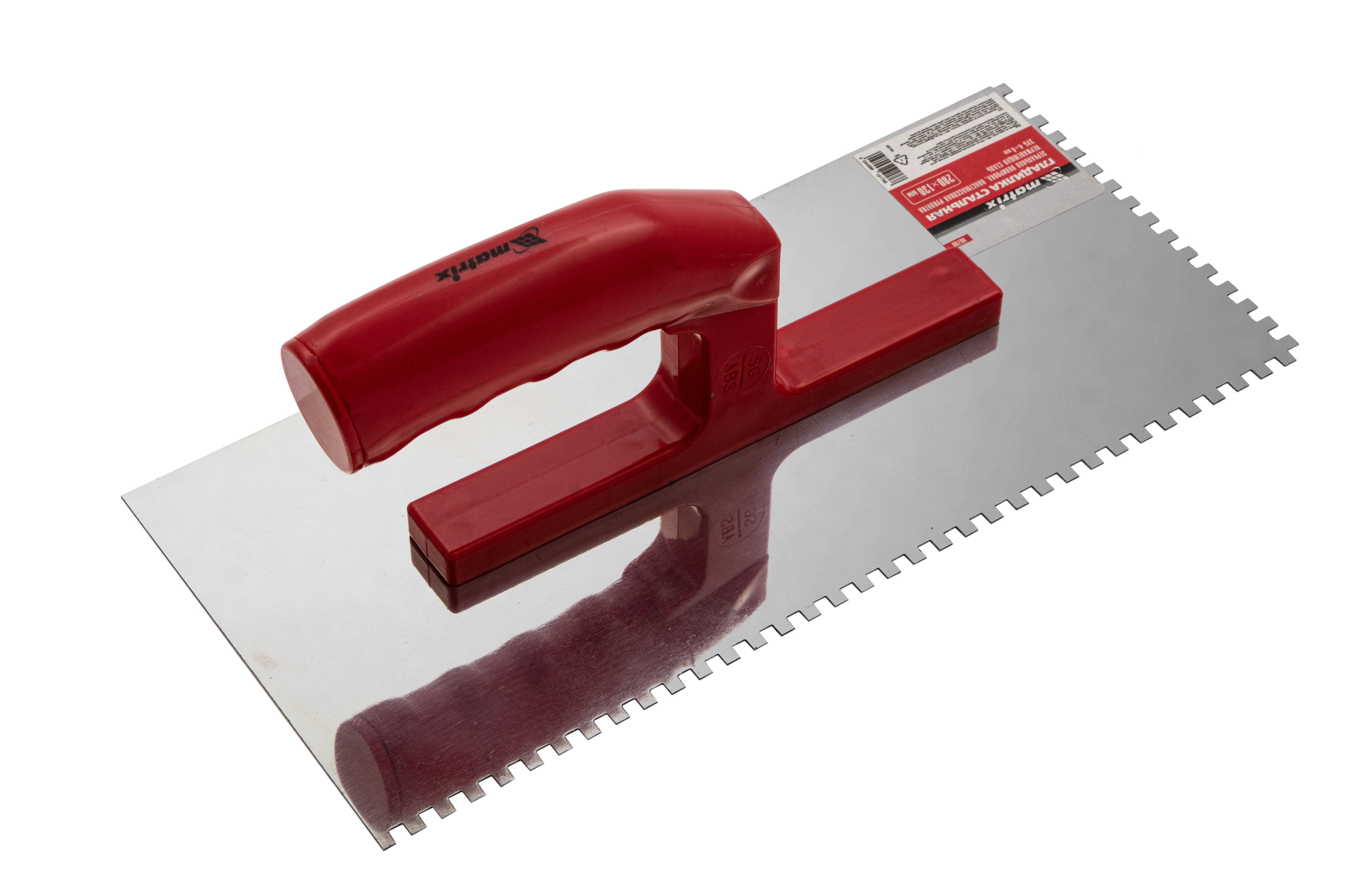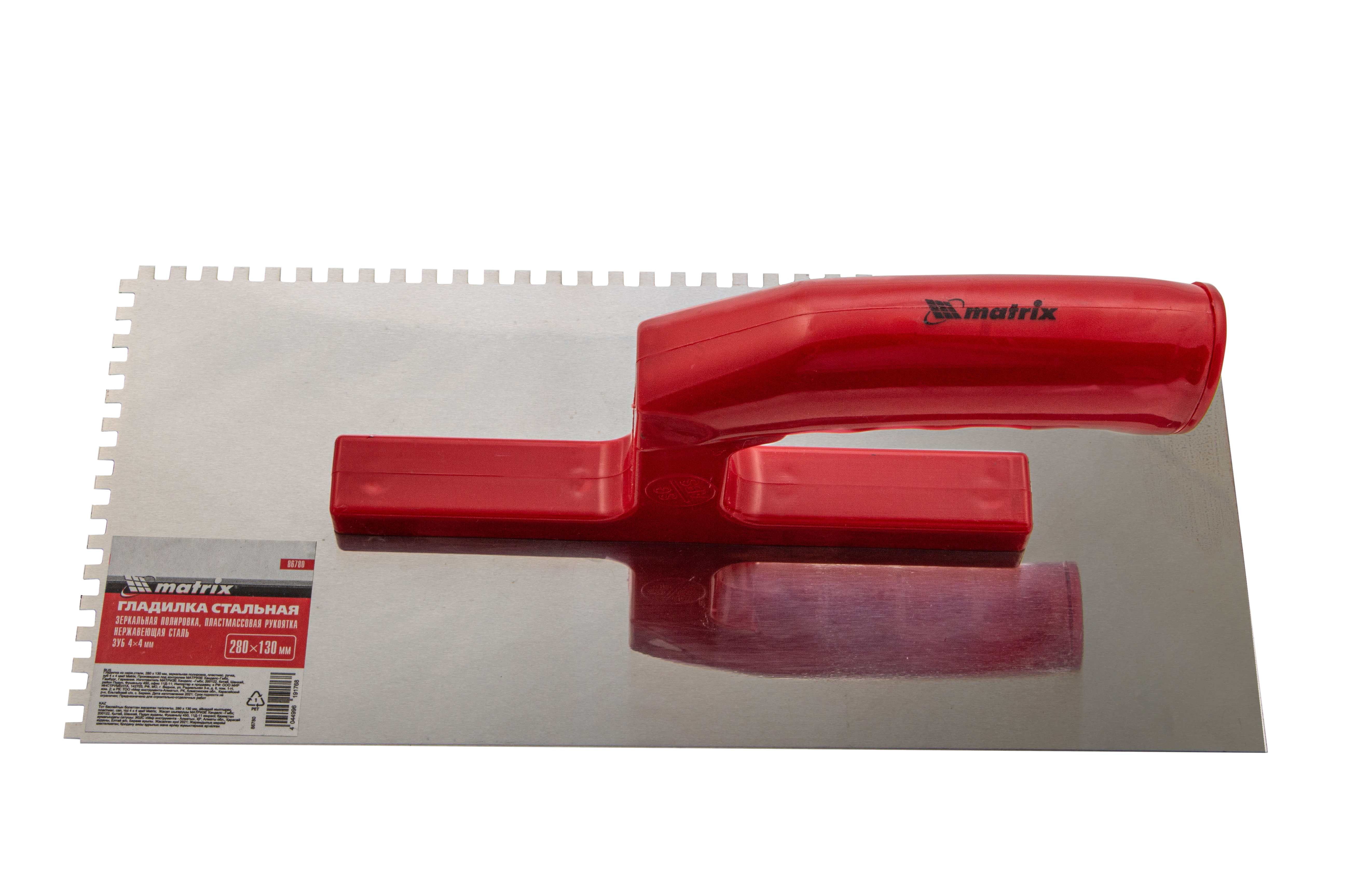 Гладилка из нержавеющей стали, 280 х 130 мм, зеркальная полировка, пластмассовая ручка, зуб 4 х 4 мм Matrix в Екатеринбурге