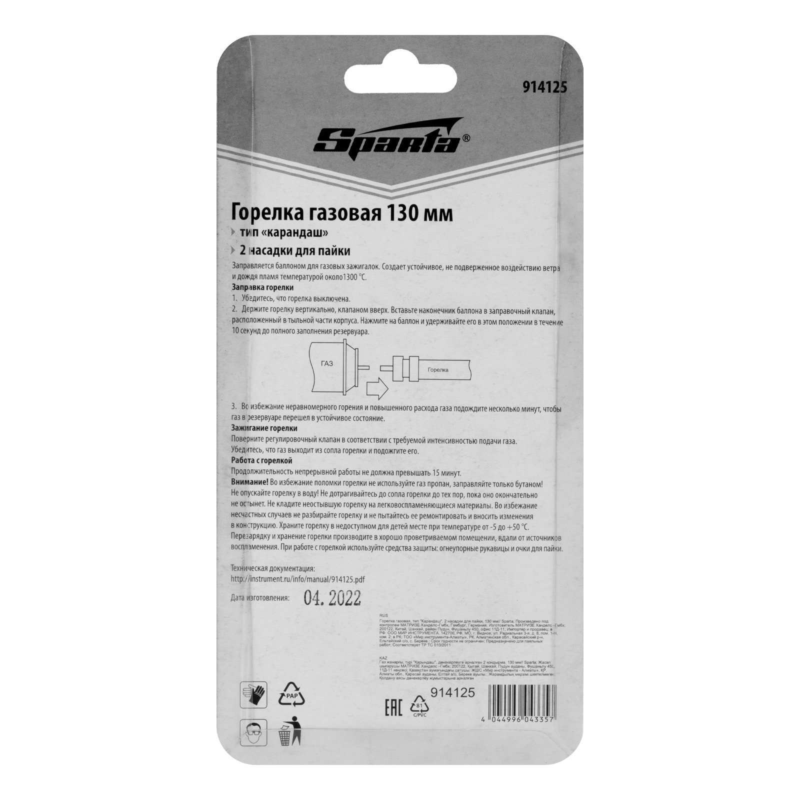 Горелка газовая, тип "Карандаш", 2 насадки для пайки, 130 мм Sparta в Екатеринбурге