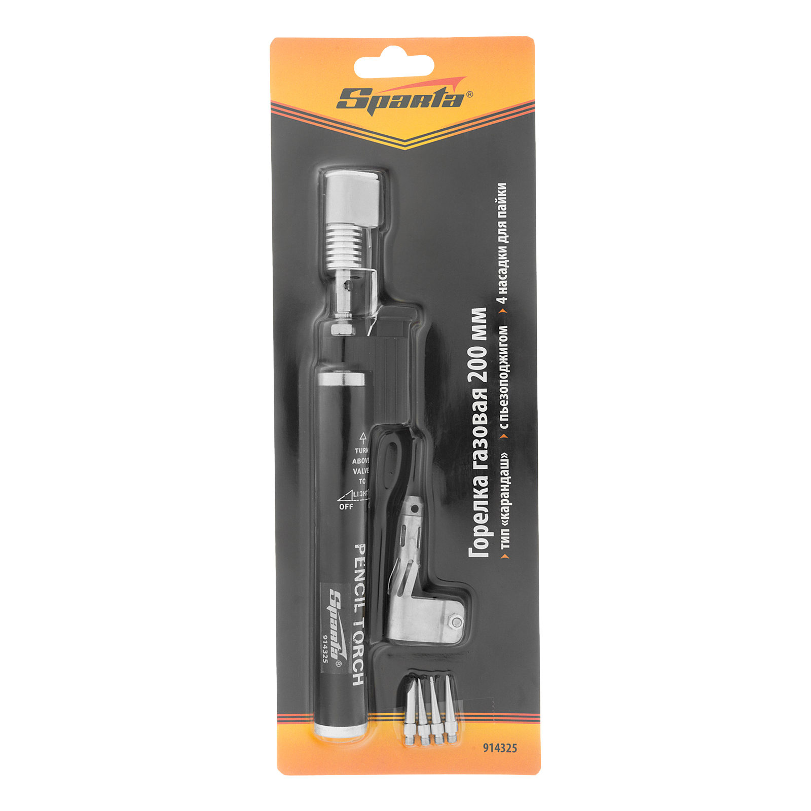 Горелка газовая, тип "Карандаш" c пьезоподжигом + 4 насадки для пайки, 200 мм Sparta в Екатеринбурге