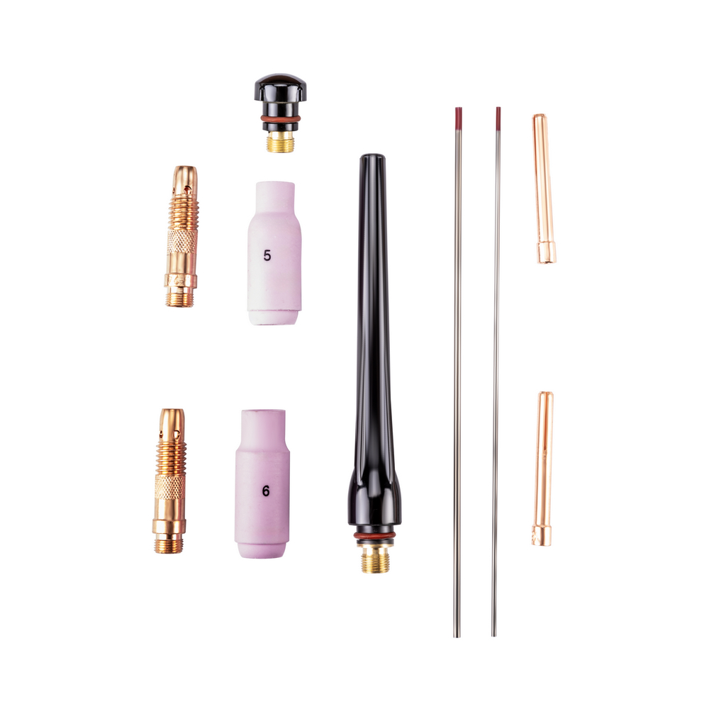 Сварочная горелка FOXWELD SAGGIOTIG-26 8М предназначена для аргонодуговой сварки вольфрамовыми электродами при выполнении различных видов сварочных работ. Удобная рукоятка с кнопкой управления сварочным процессом и эргономичный дизайн горелки обеспечивают максимальный комфорт во время работы. А дополнительный кабель подключения 5 pin увеличивает модельный ряд совместимых сварочных аппаратов.ЭРГОНОМИЧНОСТЬ: На рукоятке горелки находится кнопка управления сварки, при нажатии на кнопку происходит поджиг сварочной дуги и начинается подача газа. Кнопка управления съёмная, что позволяет быстро и легко произвести ремонт на месте проведения работ в случае повреждения.ПРЕИМУЩЕСТВА:управление кнопкой на рукояткевоздушное охлаждениекабель управления 5 pinсъёмная кнопка управления – простота обслуживания и ремонтахорошая комплектация – всё что нужно для начала сварочных работКОМПЛЕКТАЦИЯ: Горелка SAGGIOTIG-26 8 м - 1 шт.; Сопло №5 8 мм керамическое - 1 шт.; Сопло №6 10 мм керамическое - 1 шт.; Колпачок с уплотнительным кольцом длинный - 1 шт.; Колпачок с уплотнительным кольцом короткий - 1 шт.; Цанга 1,6 мм - 1 шт.; Цанга 2,4 мм - 1 шт.; Корпус цанги 1,6 мм - 1 шт.; Корпус цанги 2,4 мм - 1 шт.; Электрод вольфрамовый WT20 175х1,6 мм - 1 шт.; Электрод вольфрамовый WT20 175х2,4 мм - 1 шт.