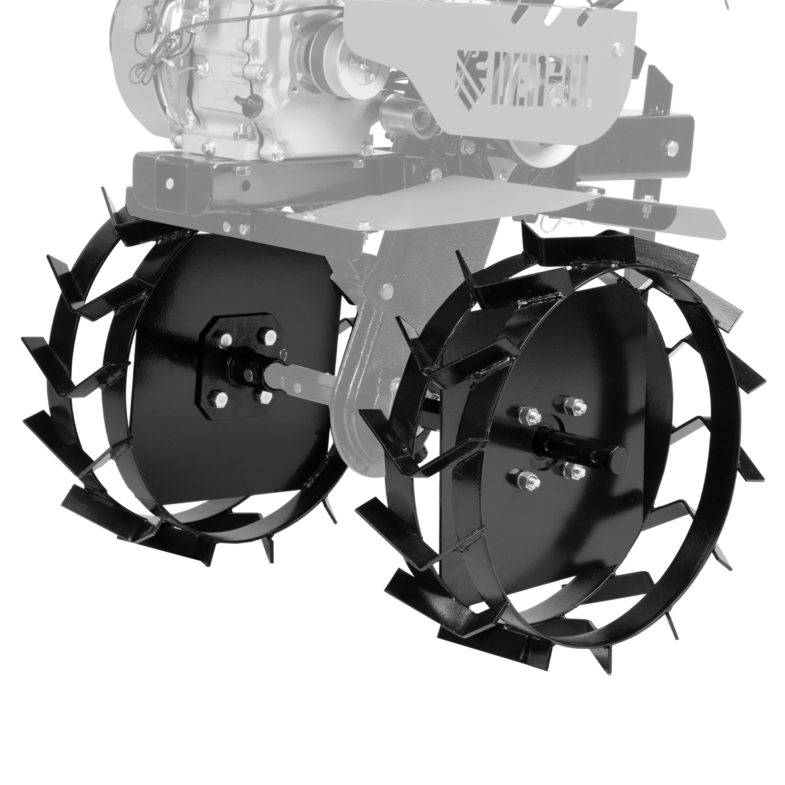 Грунтозацепы Denzel 59915 диаметром 460 мм и шириной 160 мм, с посадочным кругом 30 мм, 2 шт. в комплекте, устанавливаются на мотоблок и облегчают выполнение тяжелых работ: окучивание, вспахивание, рыхление. Обеспечивают хорошее сцепление с почвой, устойчивость на рыхлом грунте, а также улучшают проходимость. Изделия используются для ухода за дачным участком и проведения сельскохозяйственных работ.