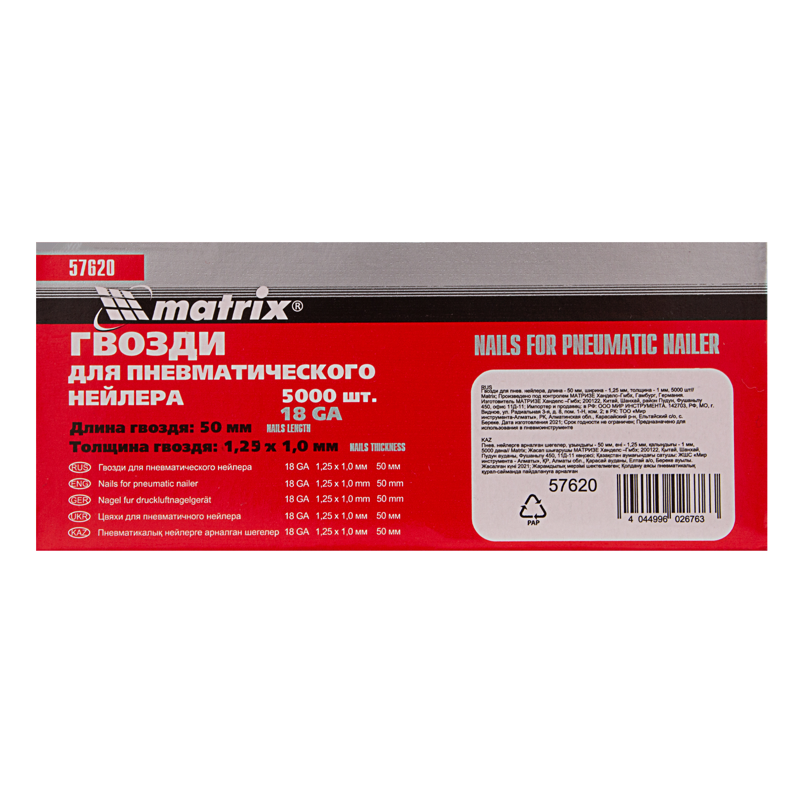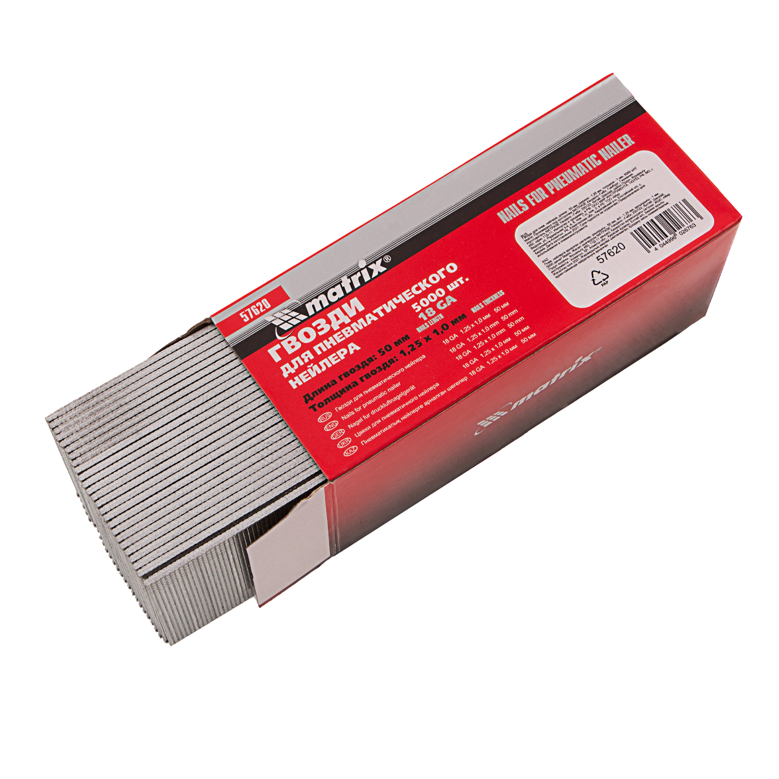Гвозди для пневматического нейлера, длина 50 мм, ширина 1.25 мм, толщина 1 мм, 5000 шт Matrix в Екатеринбурге
