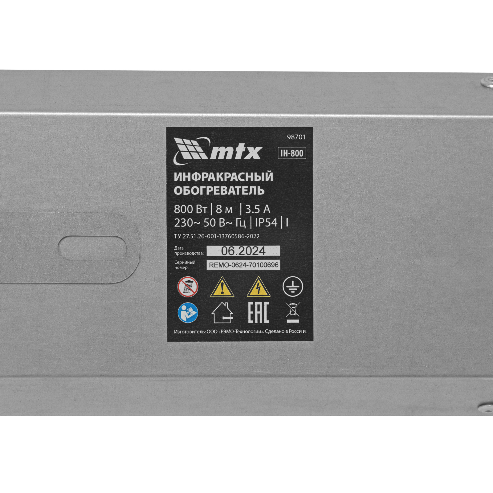 Инфракрасный обогреватель IH- 800, 230В, 800 Вт MTX в Екатеринбурге