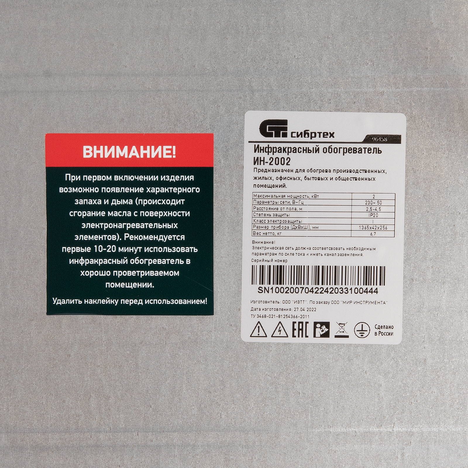 Инфракрасный обогреватель ИН- 2002, 230В, 2000 Вт Сибртех в Екатеринбурге