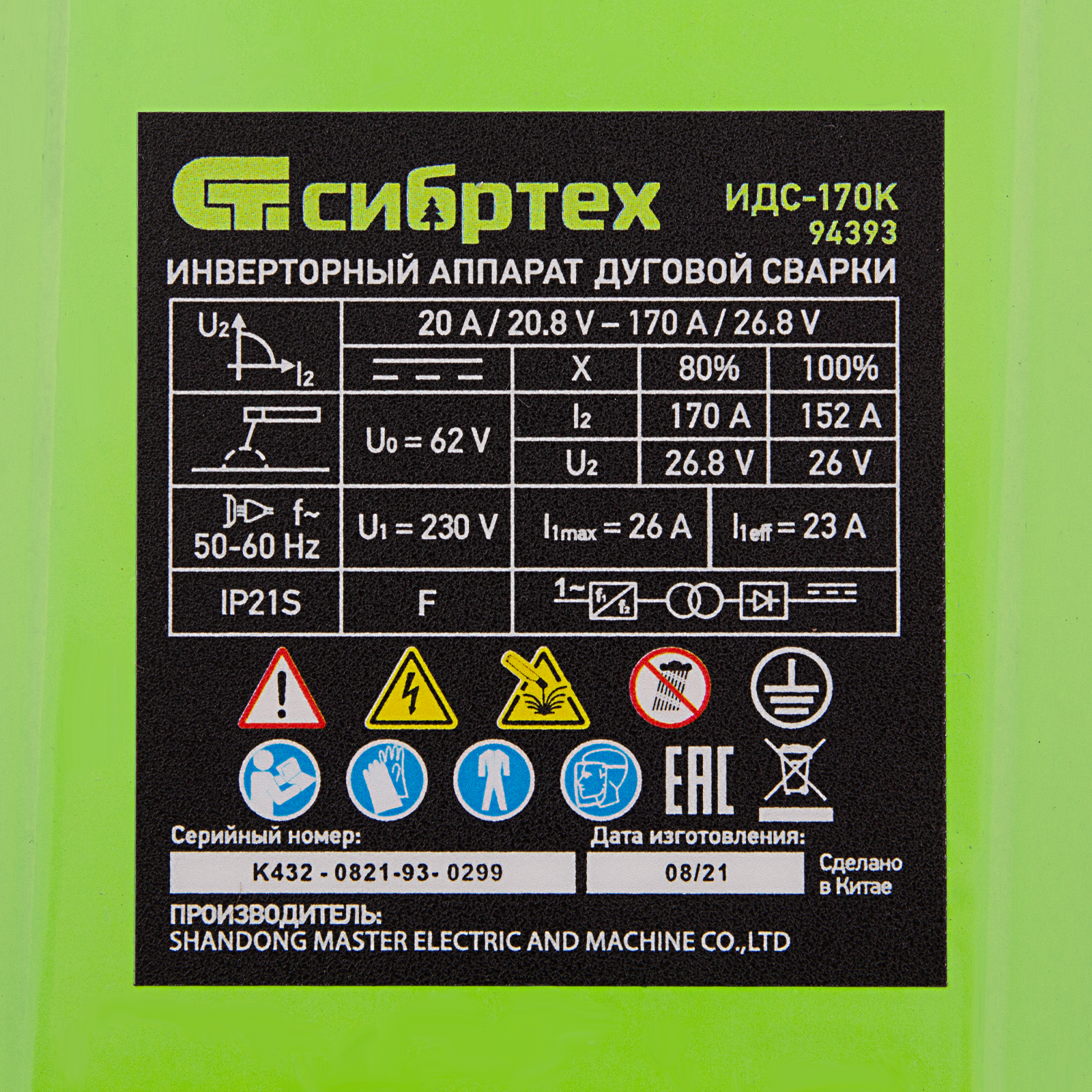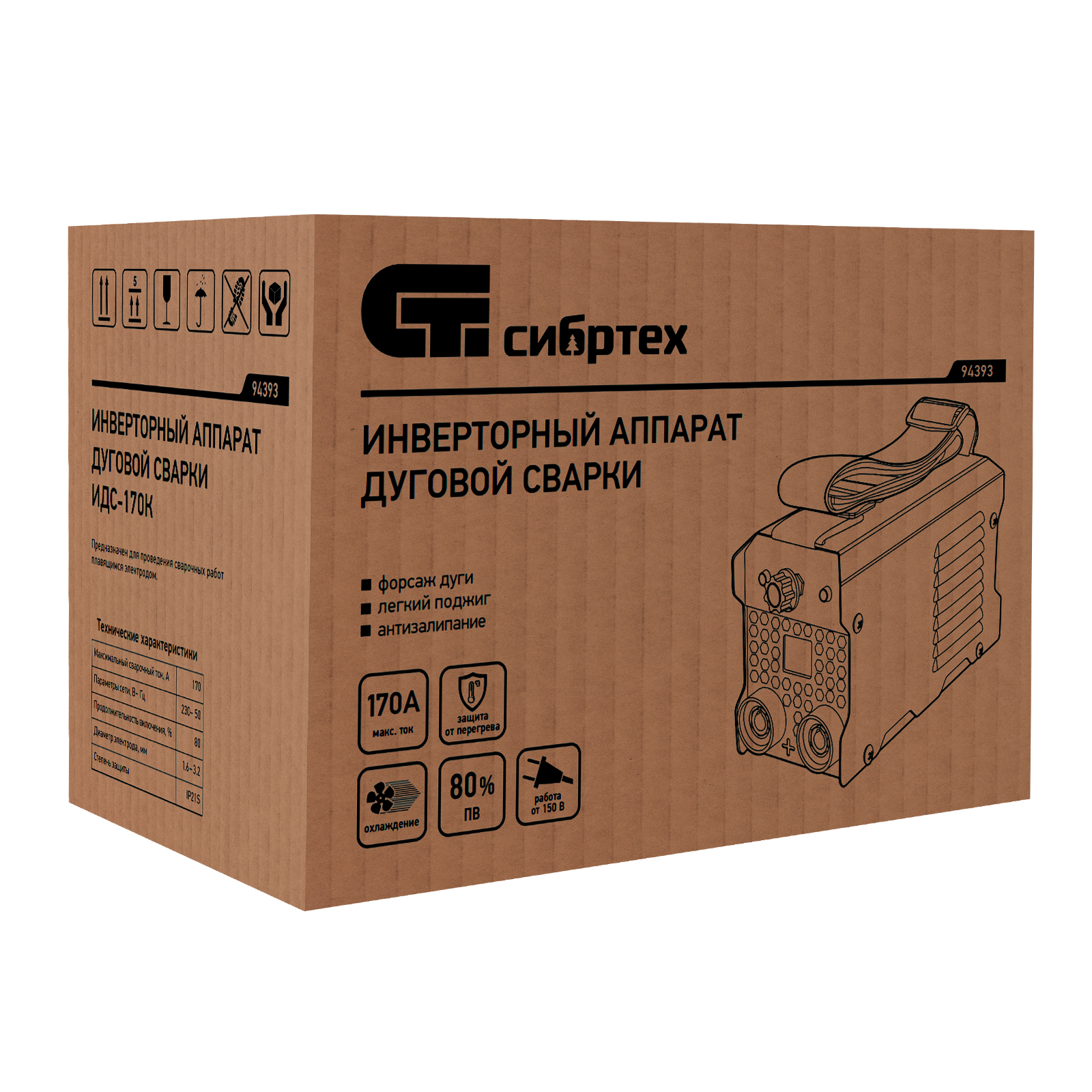 Инверторный аппарат дуговой сварки ИДС-170K, 170 А, ПВ 80%, диаметр электрода 1,6-3,2 мм Сибртех в Екатеринбурге