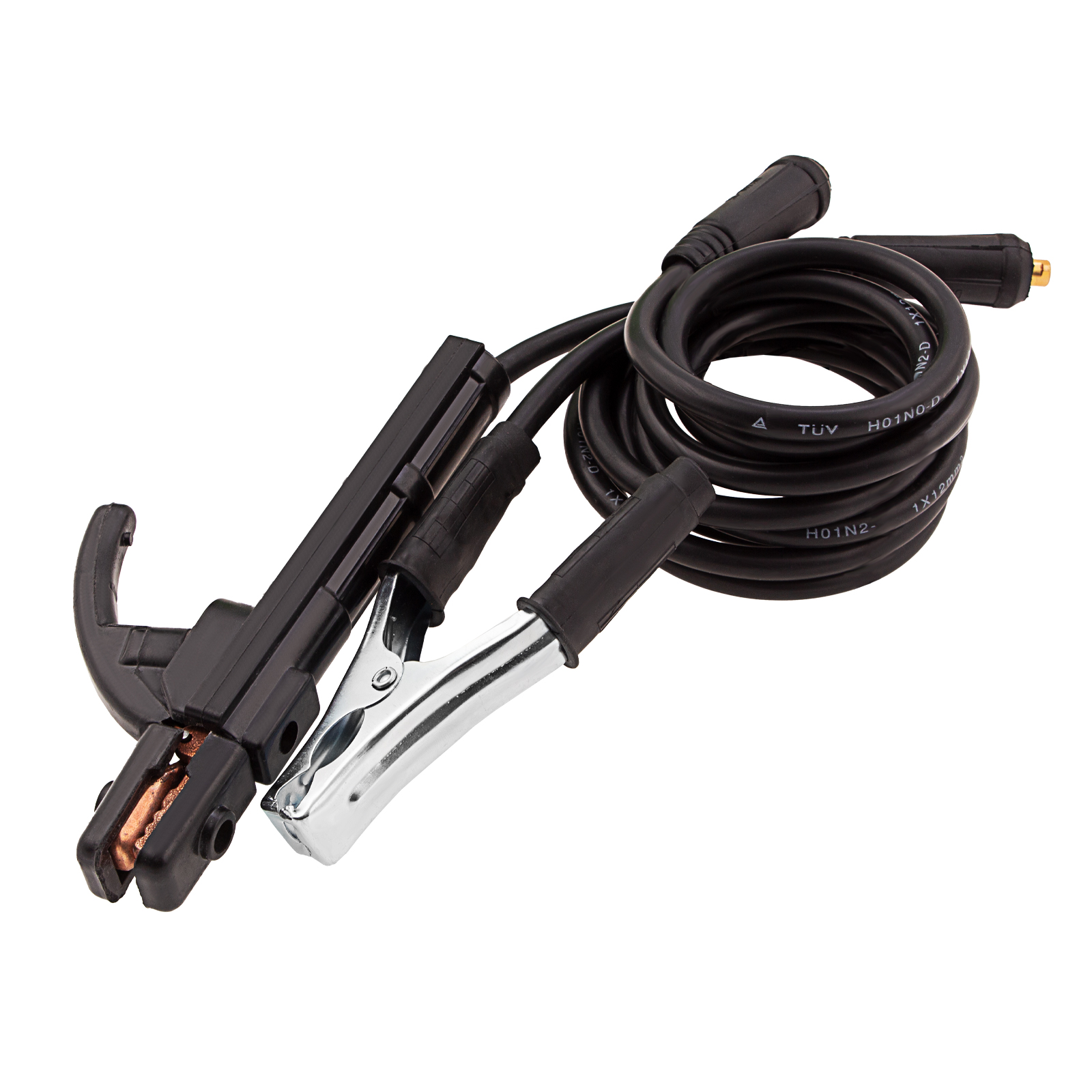- Полный комплект поставки — кабель с электрододержателем и кабель с зажимом «земля» не придется докупать отдельно.