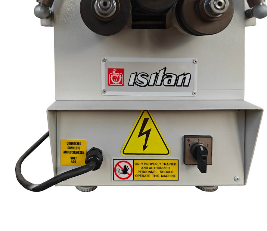 Профилегиб электромеханический ISITAN PK-20 предназначен для гибки профильных, квадратных труб и полосы, а также круглых труб и сортового проката в холодном состоянии – методом прокатки. Станок находит применение на предприятиях мелко-и среднесерийного производства. Станок оборудован электрическим двигателем с потребляемой мощностью 0,37 кВт, который через редуктор приводит в действие два нижних приводных вала. Мотор обеспечивает скорость вращения 15 метров в минуту.