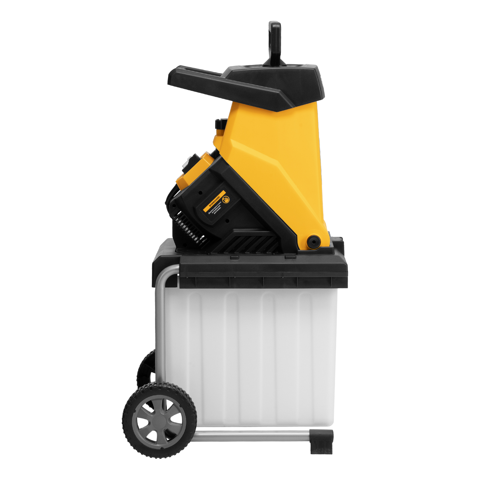 - Маневренность — для удобного перемещения по участку измельчитель оснащен колесами и ручкой.
