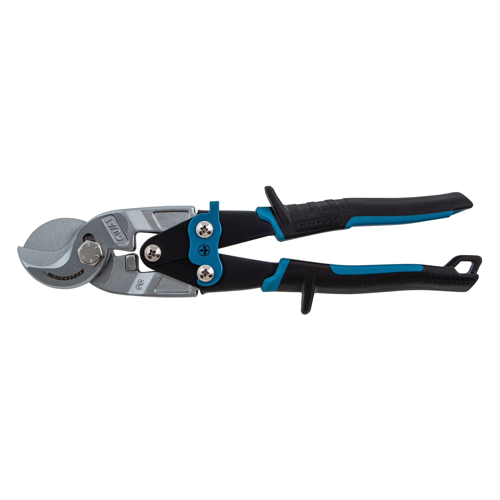 Кабелерез Gross «PIRANHA» 78450 длиной 240 мм, с двухкомпонентными рукоятками, используется для перерезания одножильных и многожильных кабелей диаметром до 14 мм и сечением до 14 кв. мм. Он пригодится частным мастерам и профессионалам при выполнении электромонтажных работ.