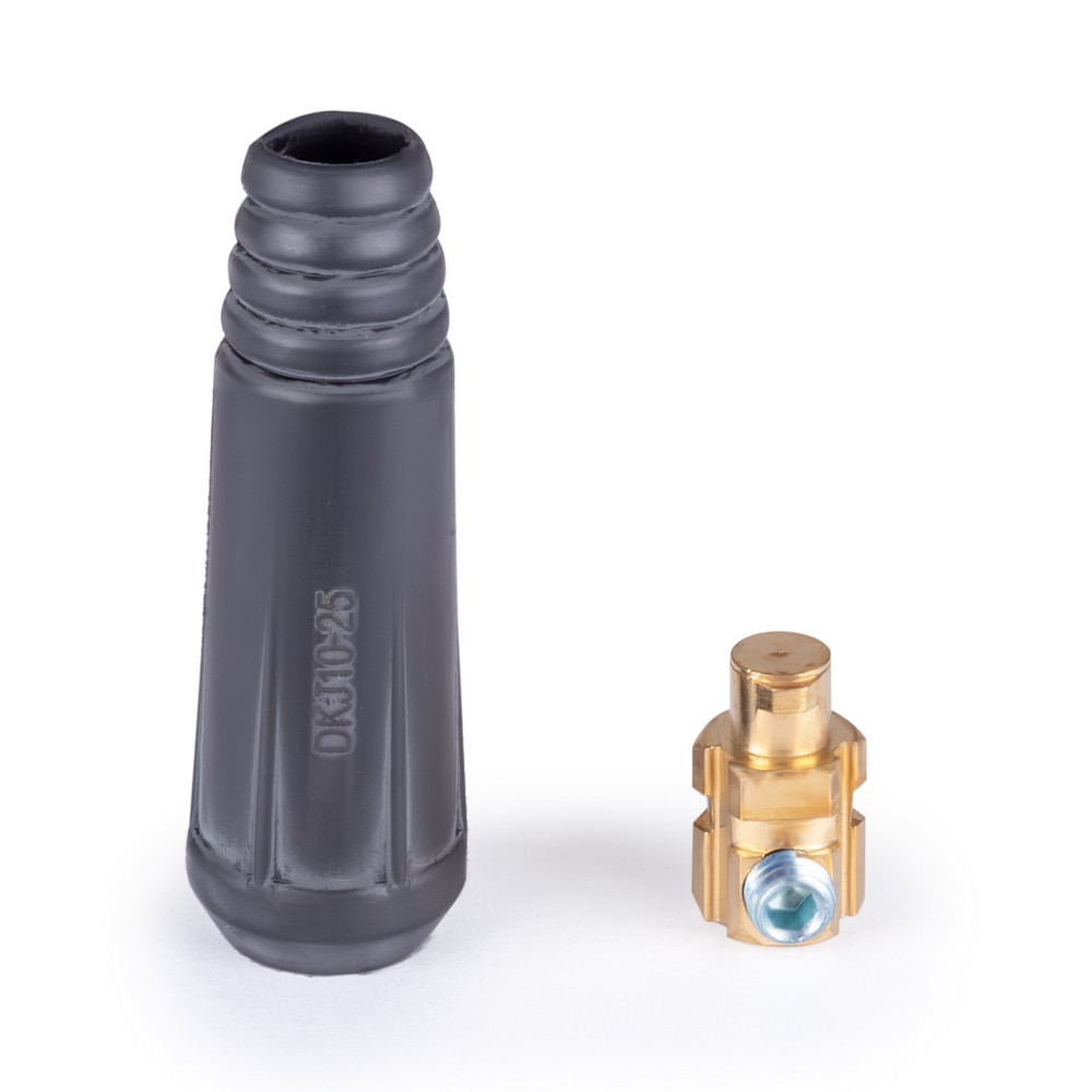 Вилка кабельная (вставка) 10–25 используется для надёжного и безопасного подключения кабелей к сварочным аппаратам, а также для соединения нескольких сварочных кабелей между собой. Конструктивно вставка выполнена в виде быстросъемного байонетного кабельного разъёма.