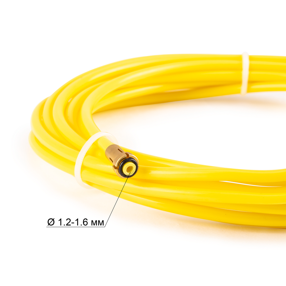 Направляющий канал производства Foxweld для подачи сварочной проволоки от источника питания MIG/MAG до сопла горелки изготовлен из тефлона и покрыт пластиком желтого цвета. Через канал может пропускаться (подаваться) проволока диаметром 1,2 – 1,6 мм. Длина составляет 4 метра.
