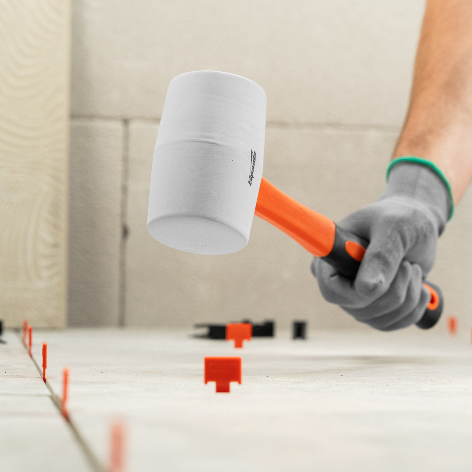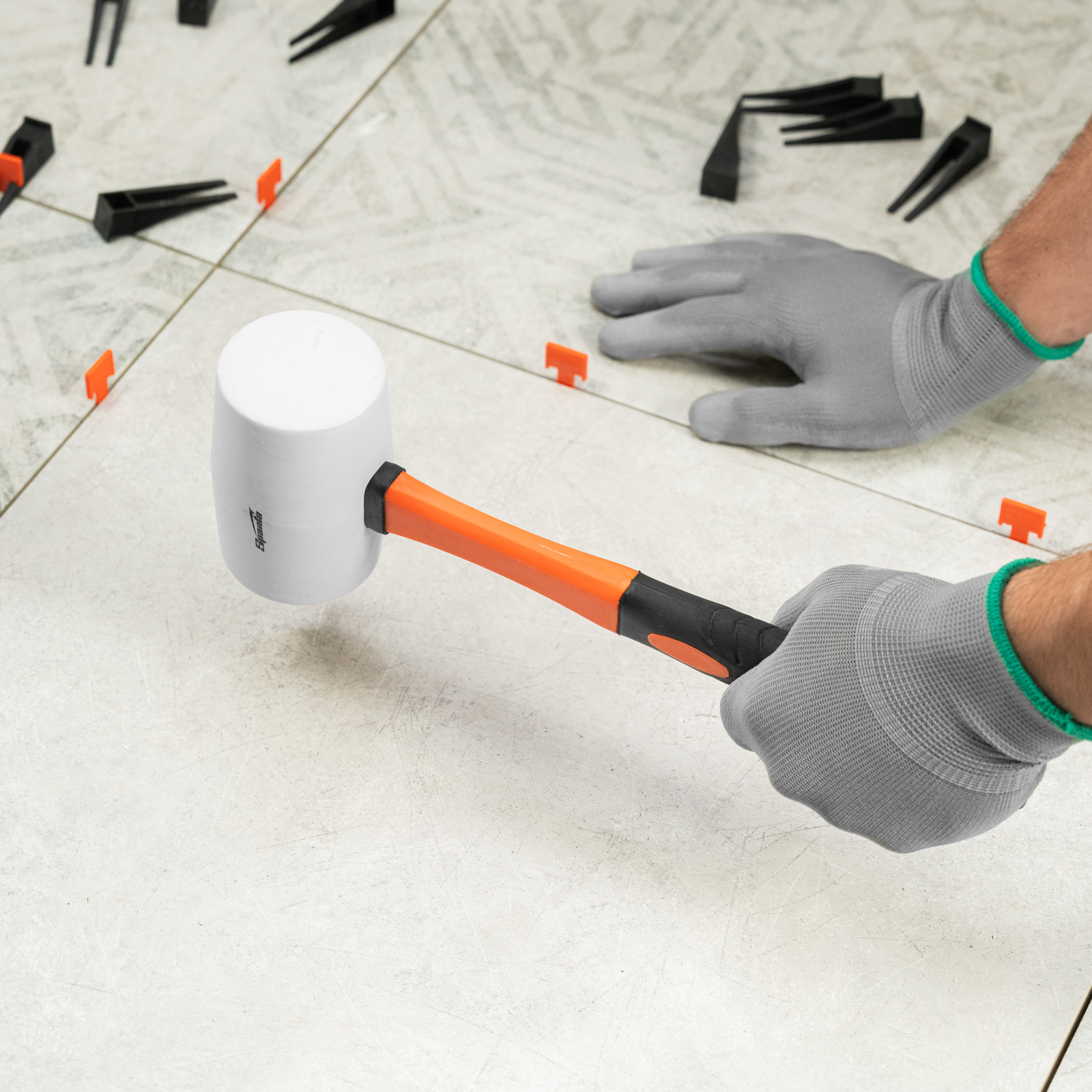 - Комфортное использование — обрезиненная рукоятка обеспечивает надежный хват и не выскальзывает из ладони, а небольшой вес киянки позволяет долго работать без усталости.