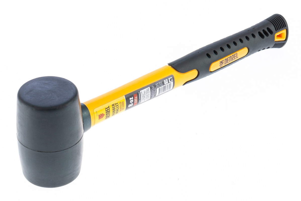 Киянка резиновая, 8 oz, черная резина, фибергласовая рукоятка Denzel в Екатеринбурге