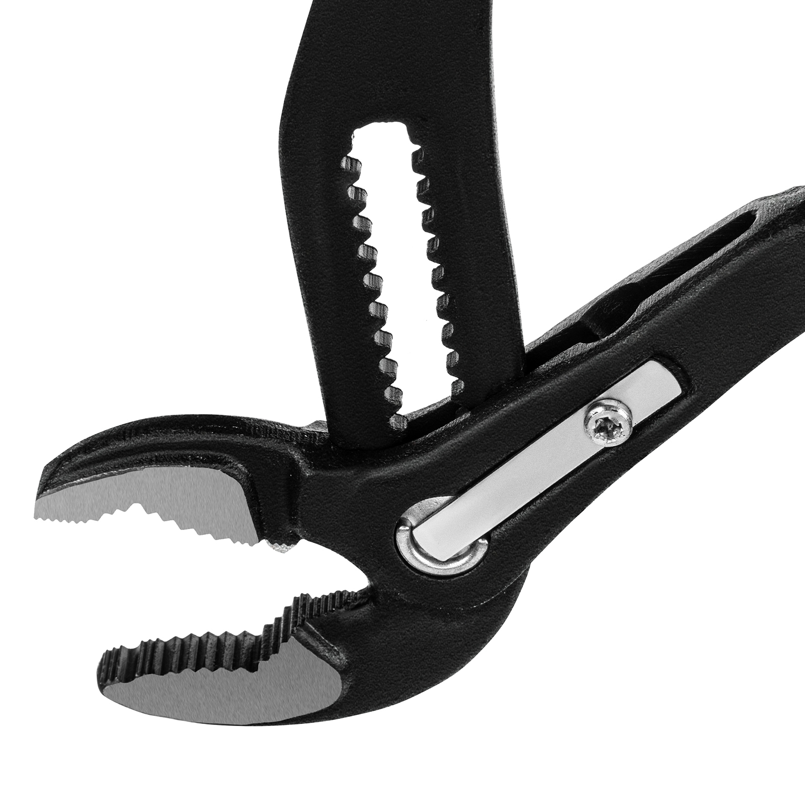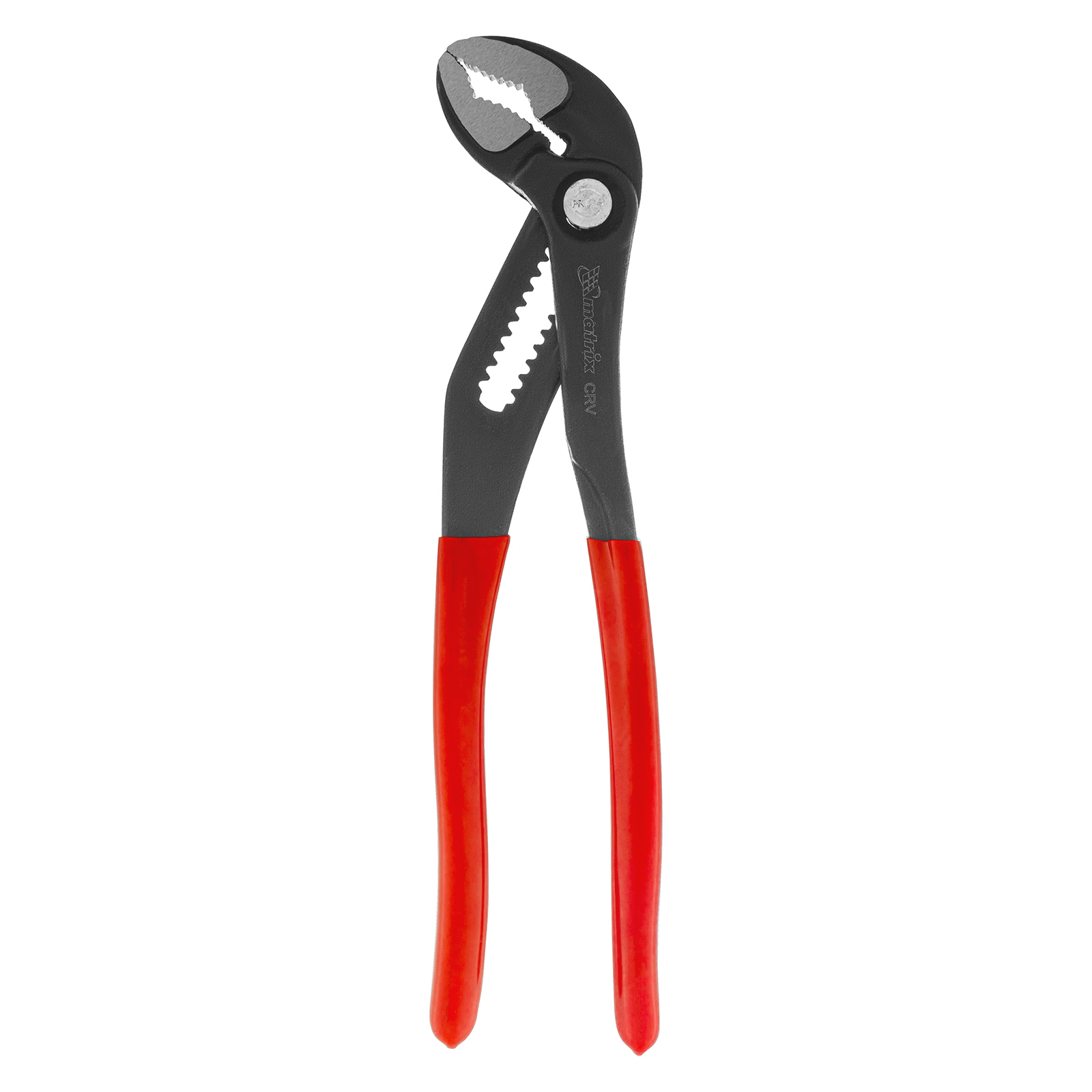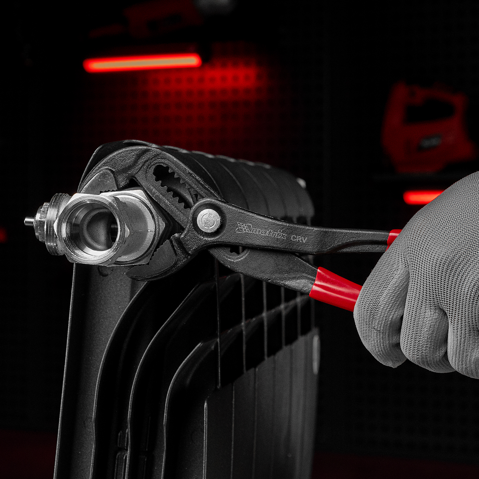 Переставные клещи Matrix 17926 длиной 250 мм, выполненные из хромованадиевой стали, с кнопочным механизмом и обливными рукоятками, используются для проведения монтажных и слесарных работ. Универсальный инструмент заменяет ключи различных размеров и применяется для фиксации заготовок, откручивания гаек, зажима и удержания труб диаметром до 60 мм.