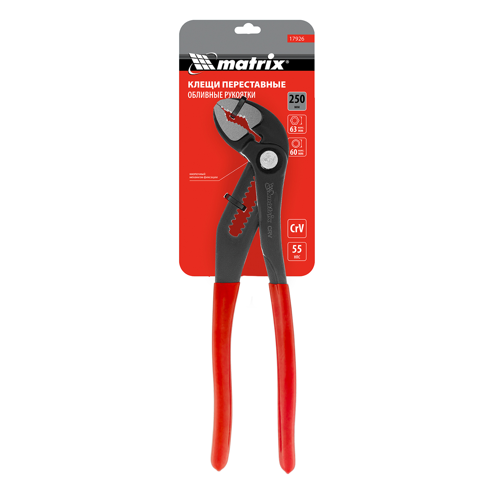 Клещи переставные 250 мм, кнопочный механизм, хром-ванадий, обливные рукоятки Matrix в Екатеринбурге