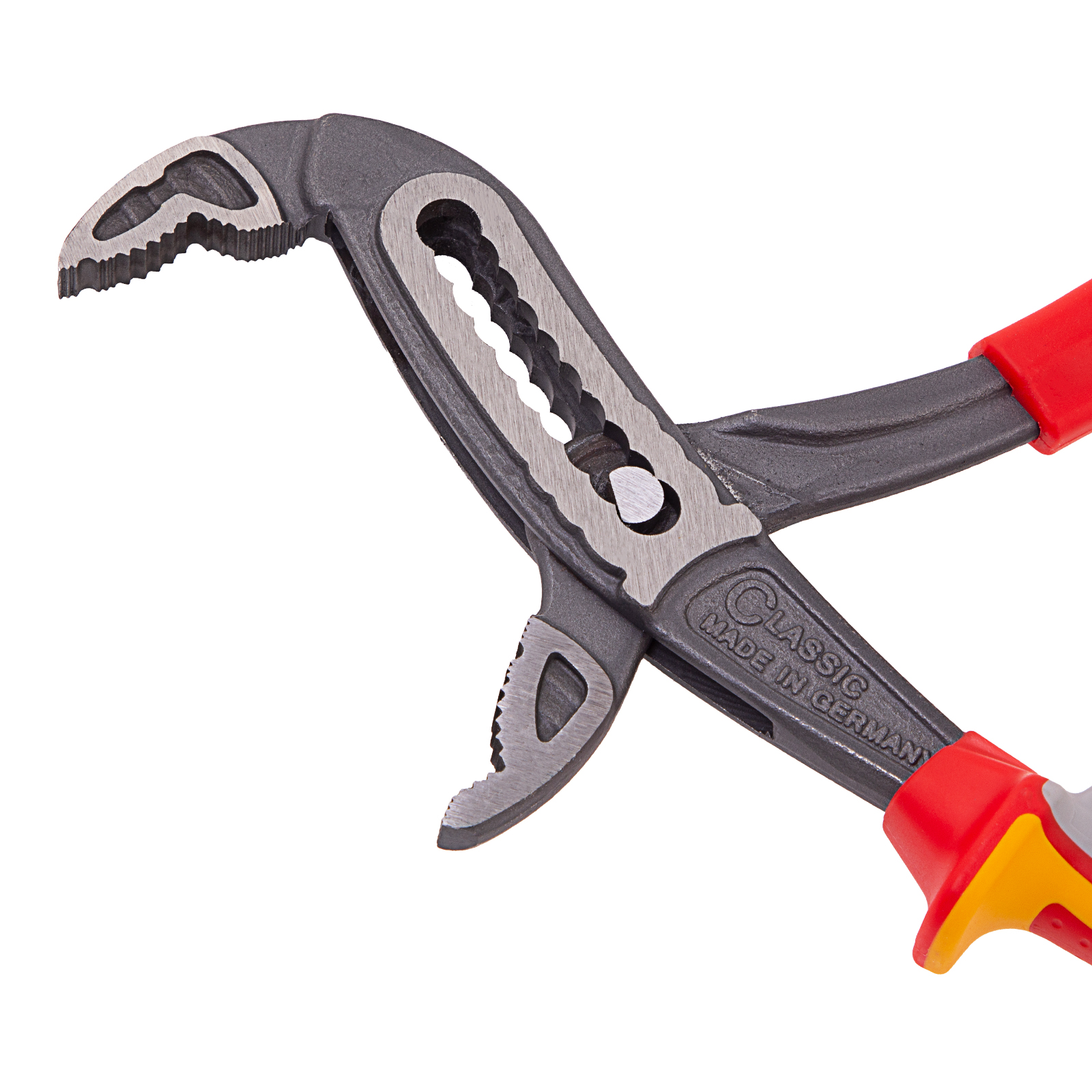 Переставные клещи Gross 15725 длиной 240 мм, с диэлектрическими рукоятками до 1000 В, — шарнирно-губцевый инструмент, предназначенный для выполнения ремонтных, слесарно-монтажных, сантехнических работ. Клещи помогают удерживать и вращать детали диаметром до 50 мм: трубы, фитинги, крепеж. Важно — выполнять работы под напряжением запрещено!