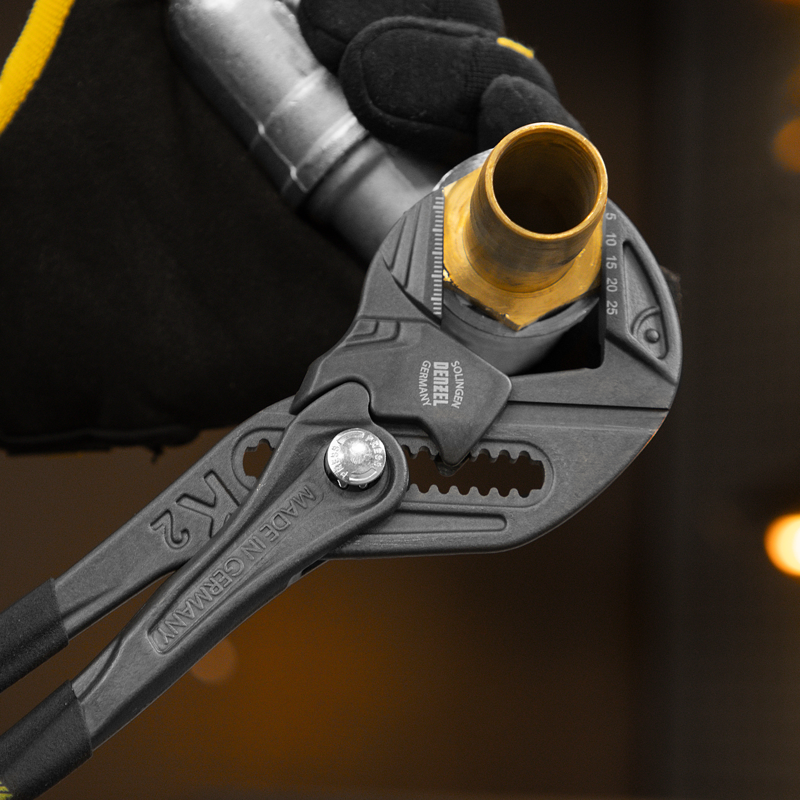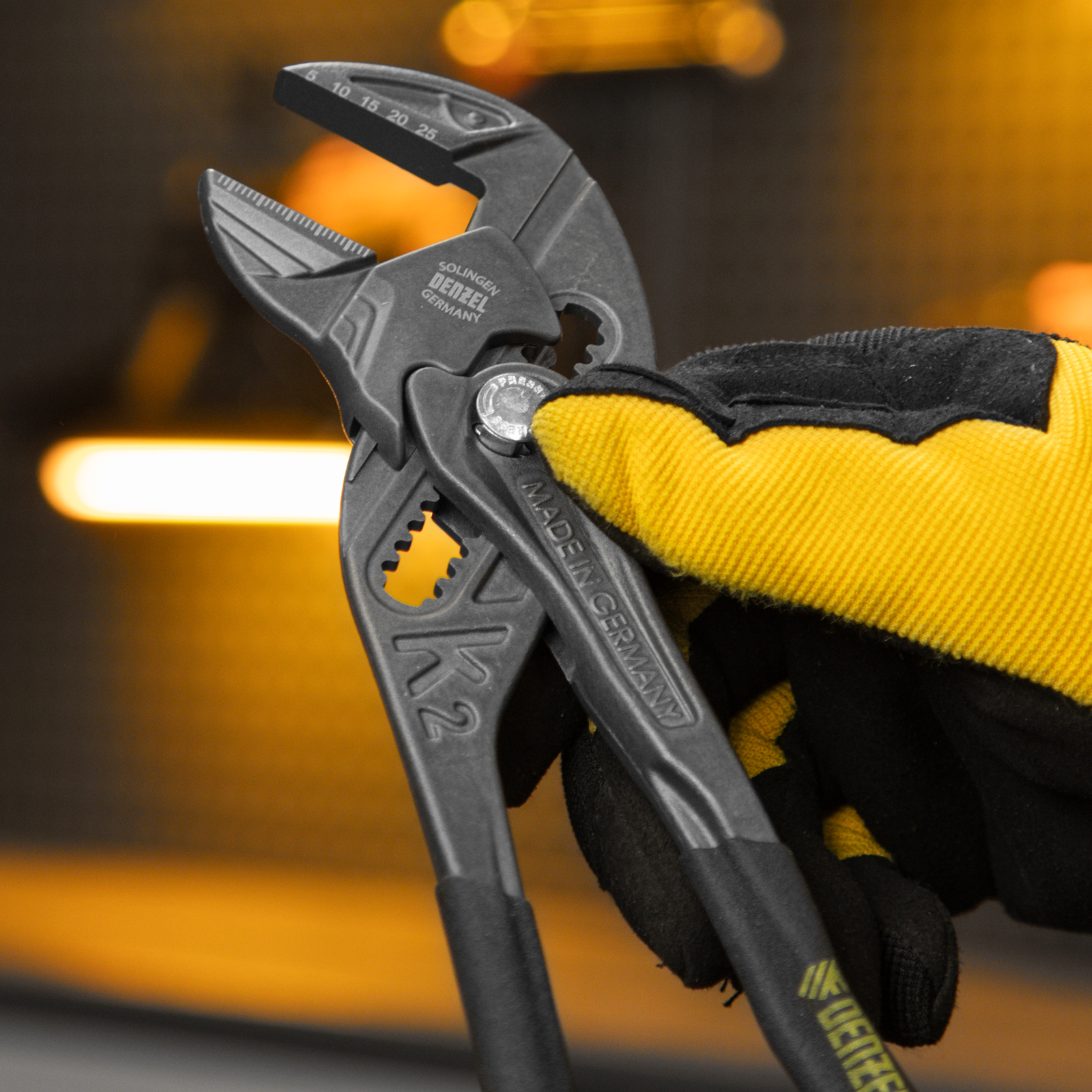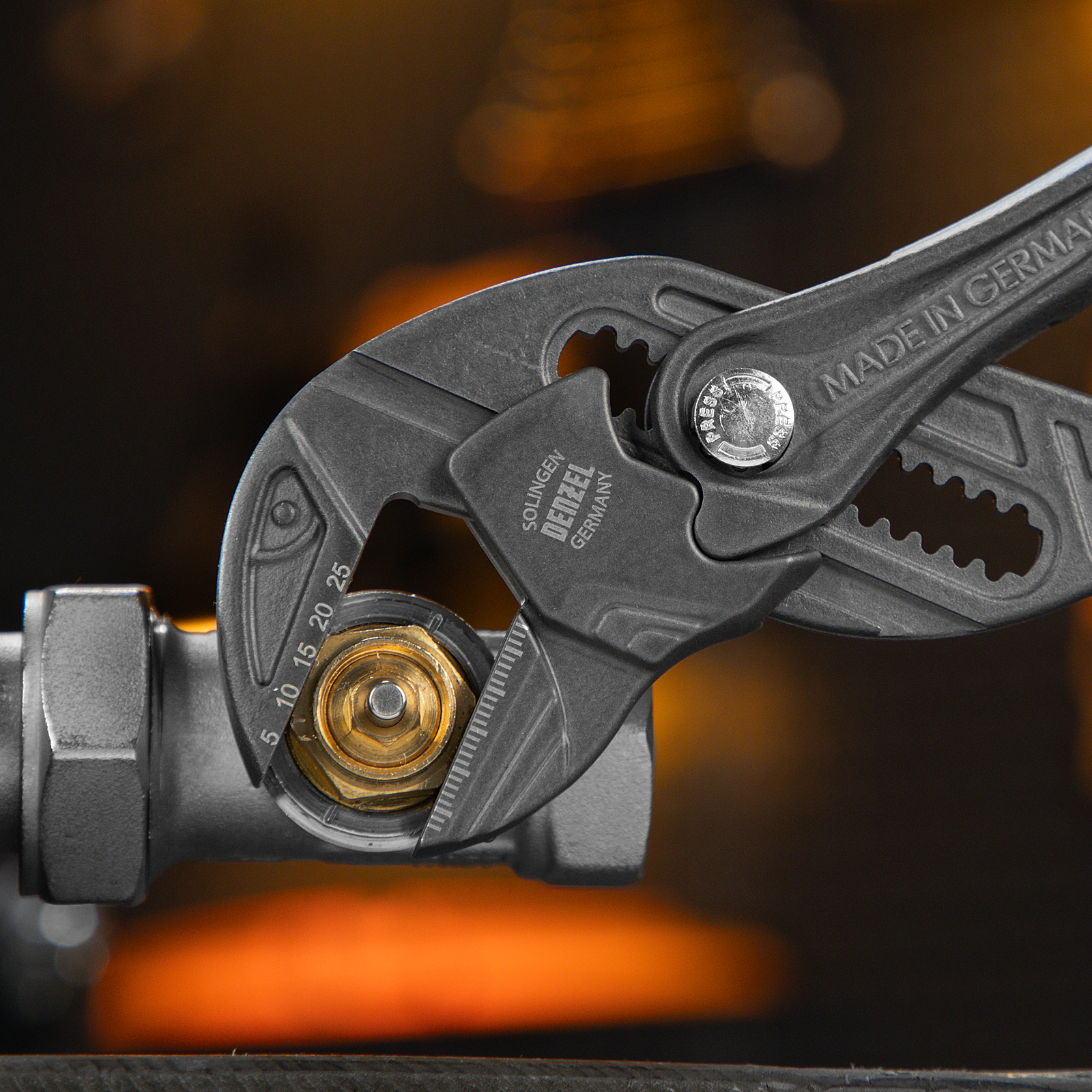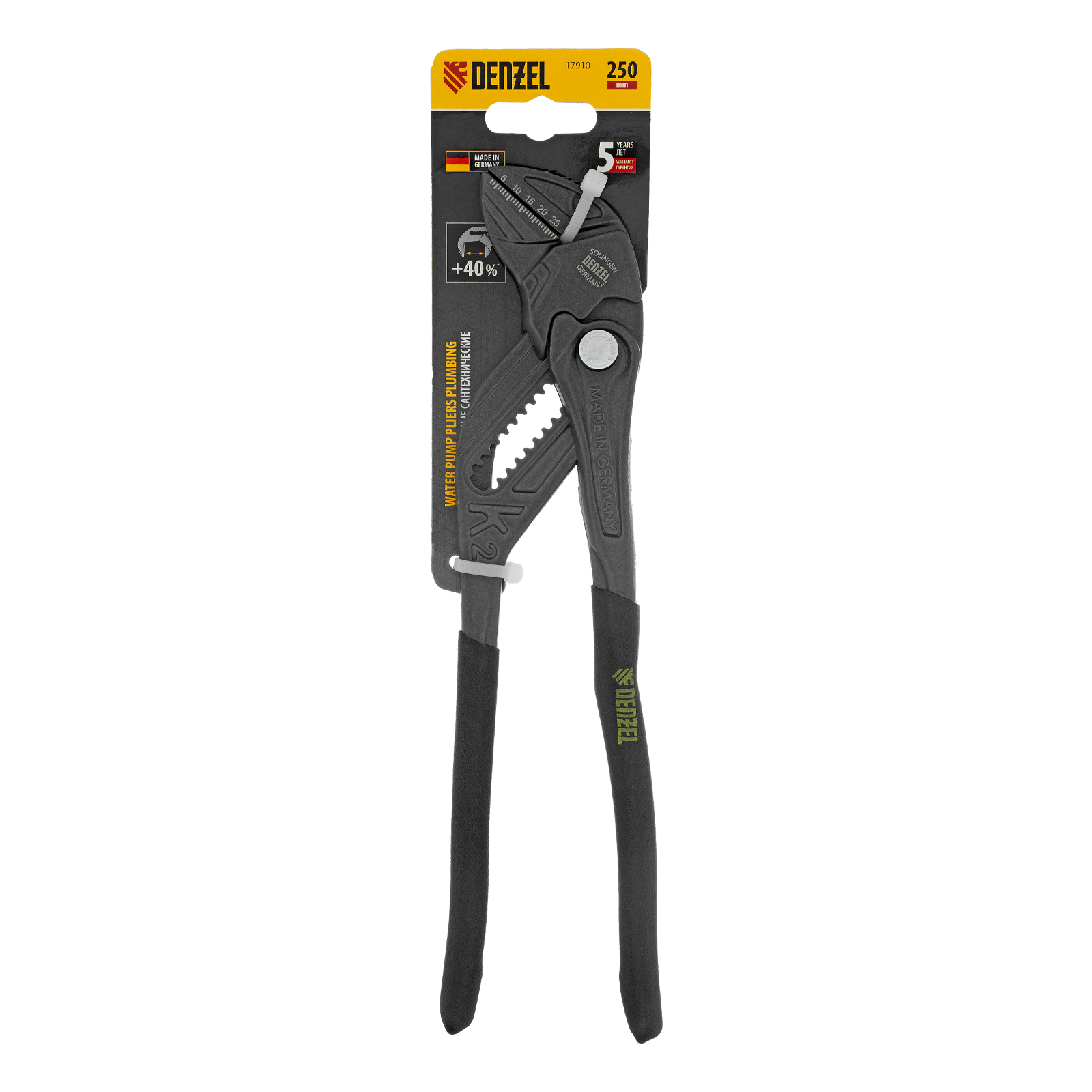 Клещи переставные, кнопочный механизм, обливные рукоятки, сантехнические, 250 мм Denzel в Екатеринбурге