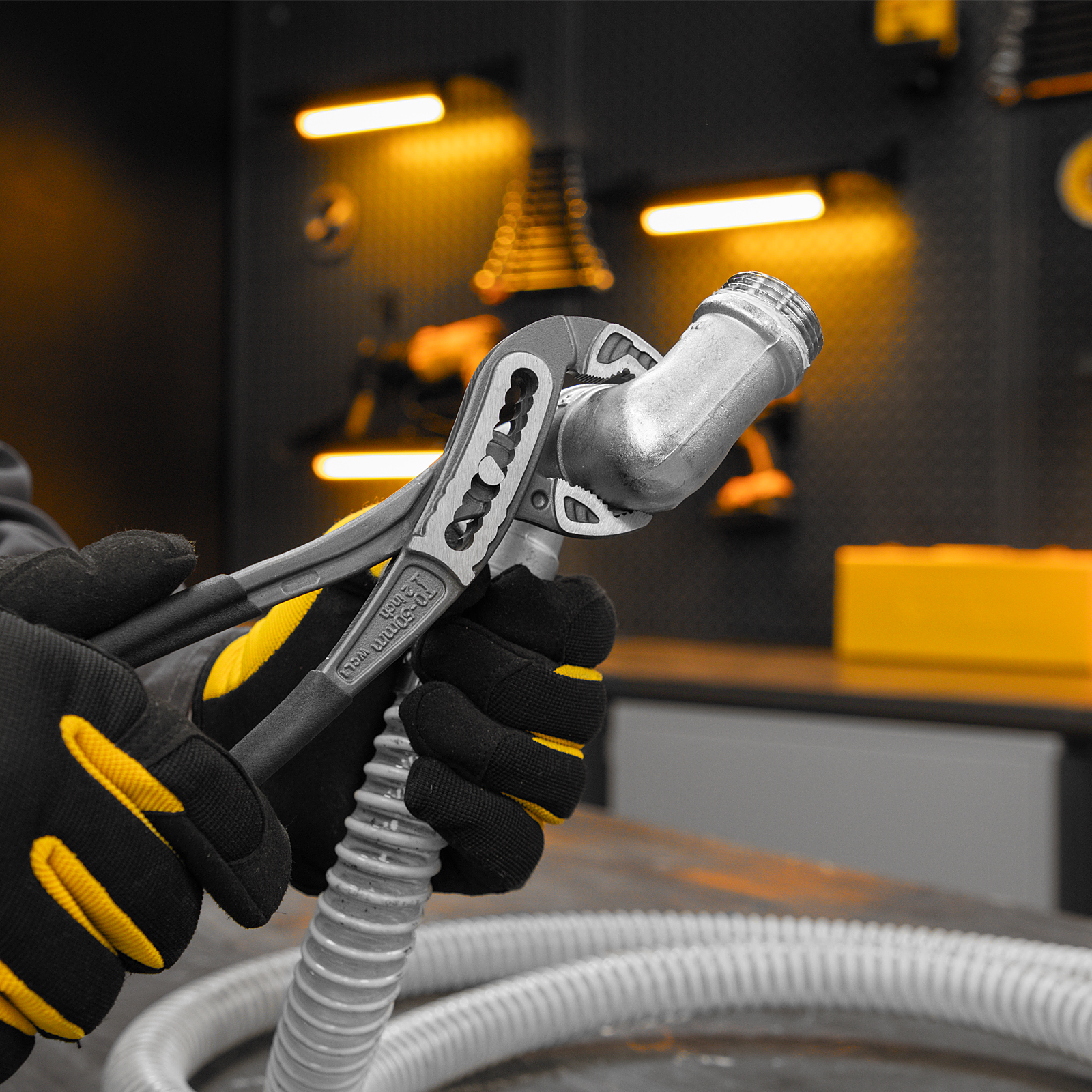 Переставные клещи Denzel 17902 длиной 240 мм, с обливными рукоятками, предназначены для фиксации и вращения деталей и заготовок различной формы. Подходят для захвата фитингов, труб, крепежных элементов. Инструмент используется при проведении ремонтных, монтажных, сантехнических работ.