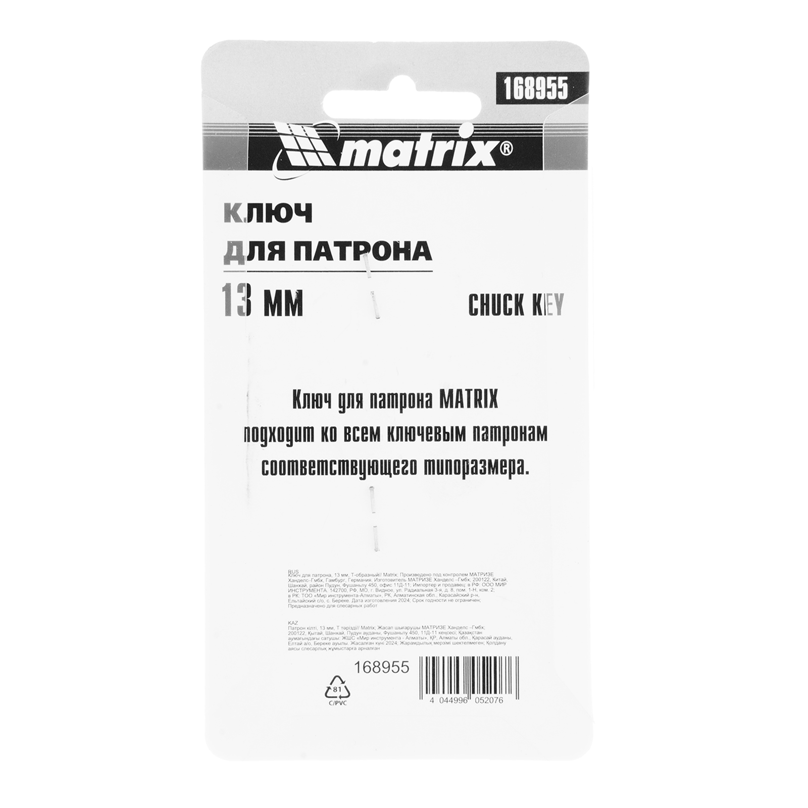 Ключ для патрона, 13 мм, Т-образный Matrix в Екатеринбурге