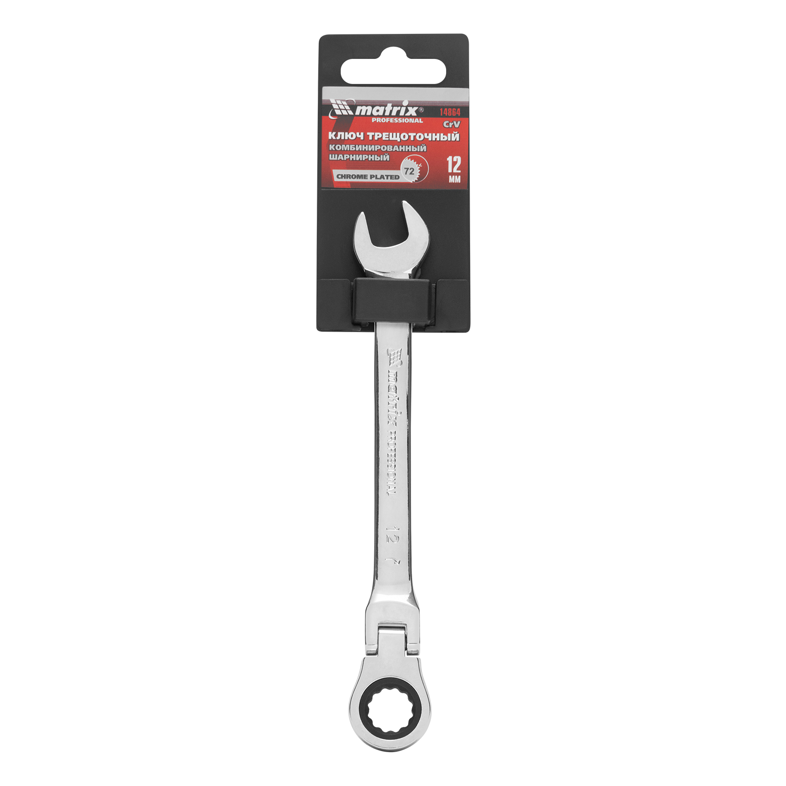 Ключ комбинированный трещоточный, 12 мм, CrV, шарнирный, зеркальный хром Matrix Professional в Екатеринбурге