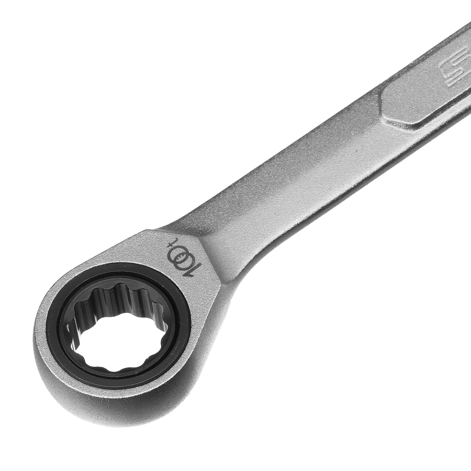 - Храповый механизм оснащен 100 зубцами, что обеспечивает плавность хода инструмента (шаг трещотки всего 3,6 градусов) и делает его удобным для работы в ограниченном пространстве.