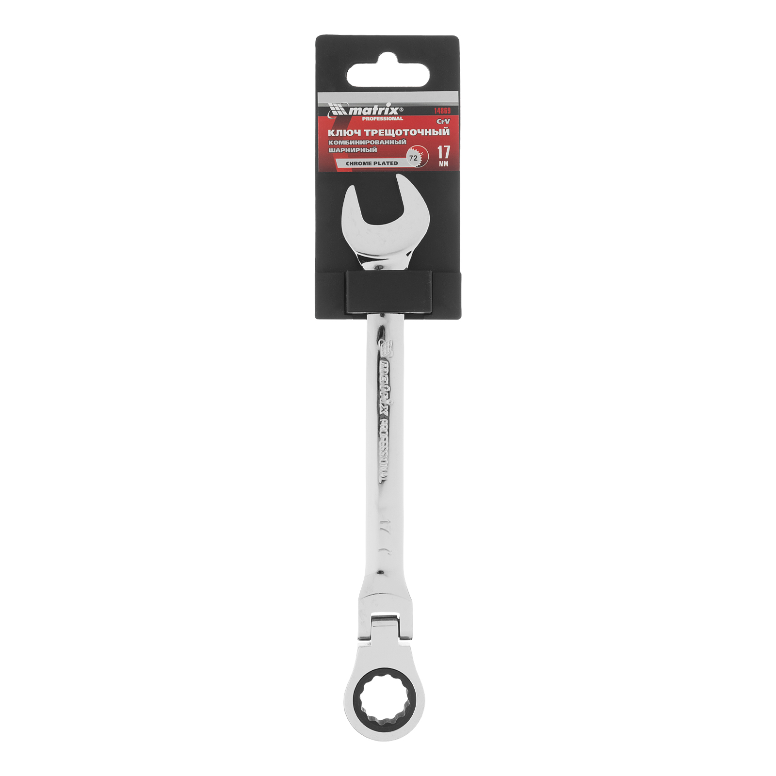 Ключ комбинированный трещоточный, 17 мм, CrV, шарнирный, зеркальный хром Matrix Professional в Екатеринбурге