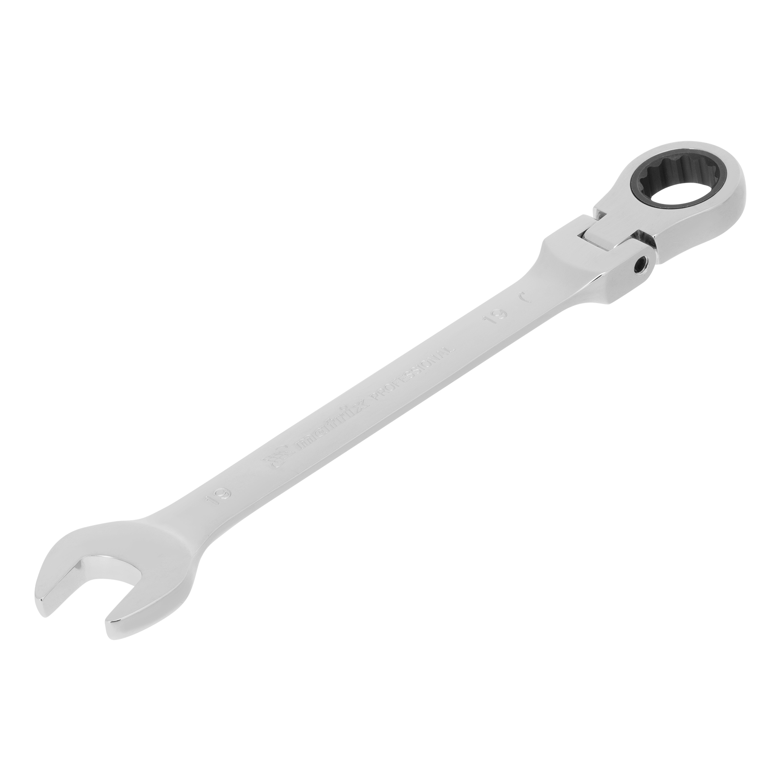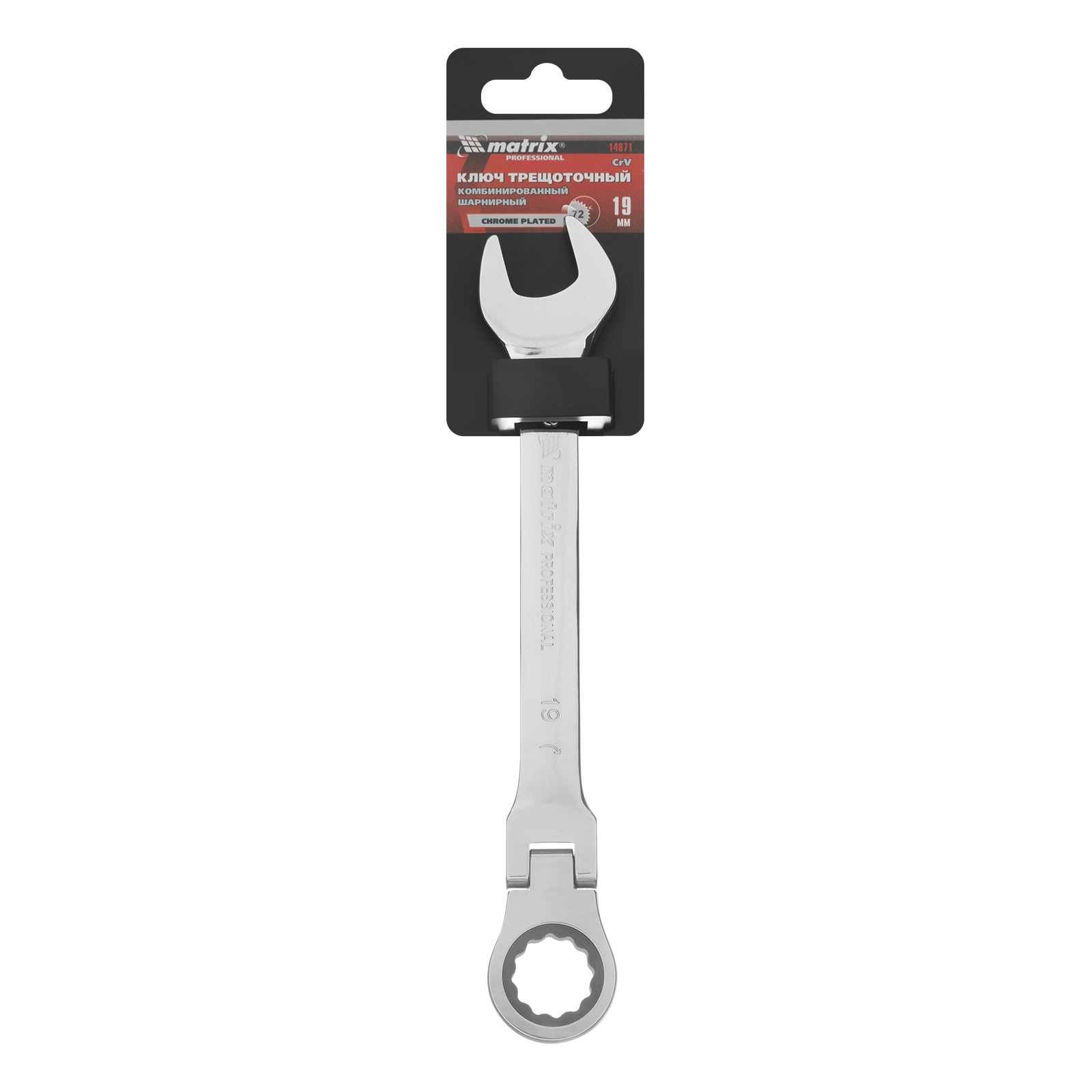Ключ комбинированный трещоточный, 19 мм, CrV, шарнирный, зеркальный хром Matrix Professional в Екатеринбурге
