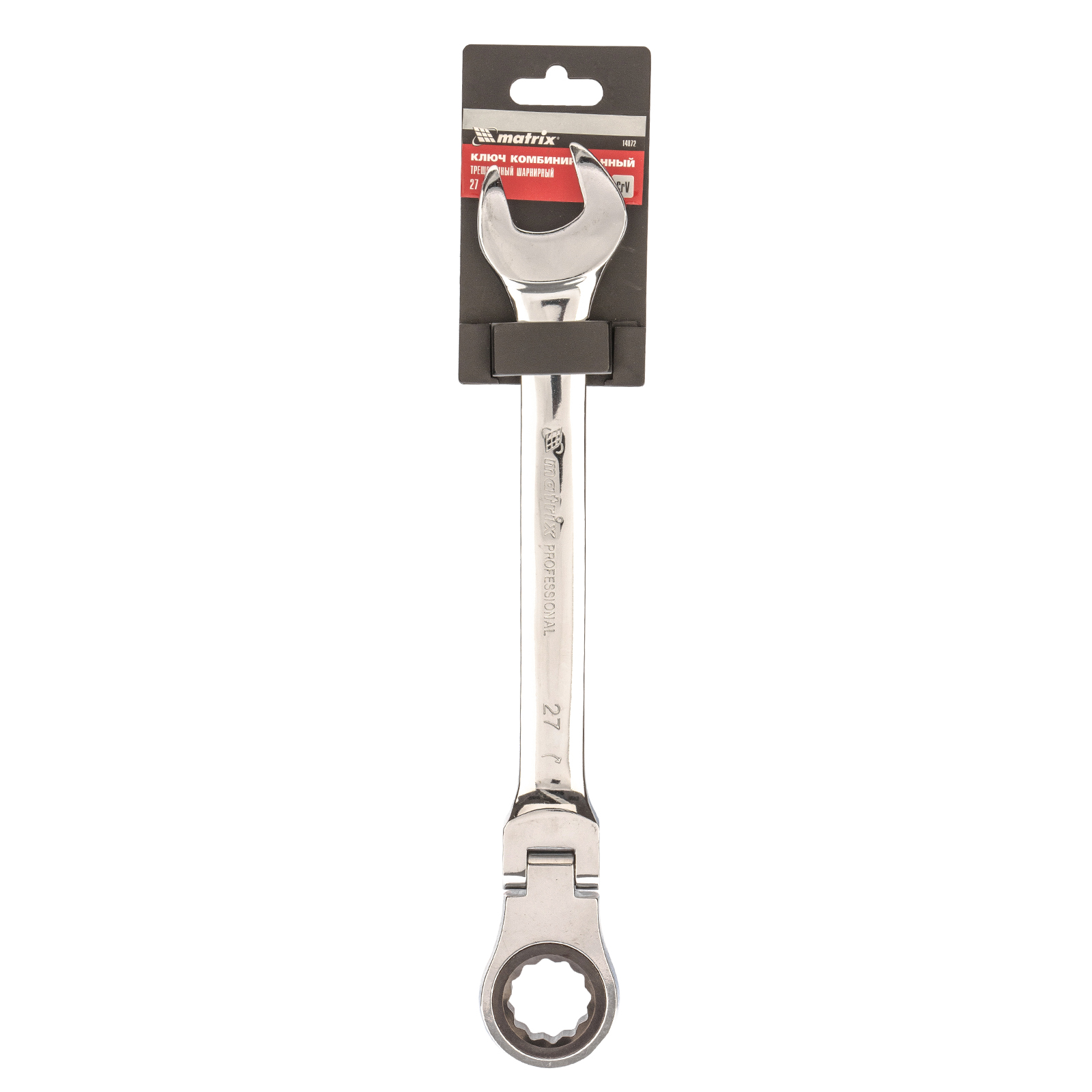 Ключ комбинированный трещоточный, 27 мм, CrV, шарнирный, зеркальный хром Matrix в Екатеринбурге