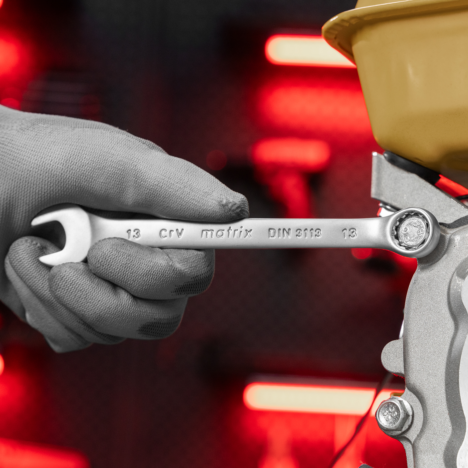 Комбинированный ключ Matrix 15109 размером 13 мм, из стали CrV, с покрытием «матовый хром», пригодится во время ремонтных работ дома или в гараже. С его помощью можно быстро монтировать и демонтировать крепежные элементы. Угол наклона кольцевого зева относительно плоскости инструмента составляет 15°, поэтому ключом удобно работать в труднодоступных местах.