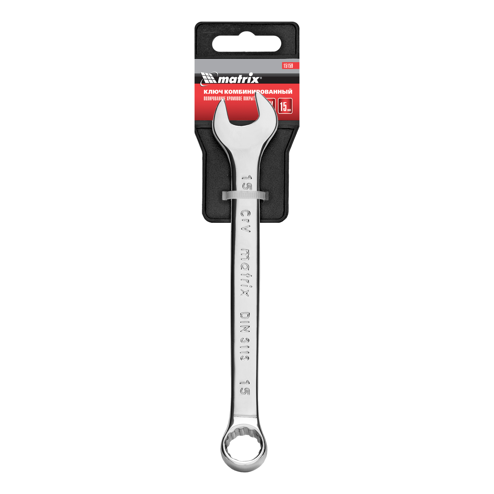 Ключ комбинированный, 15 мм, CrV, полированный хром Matrix в Екатеринбурге