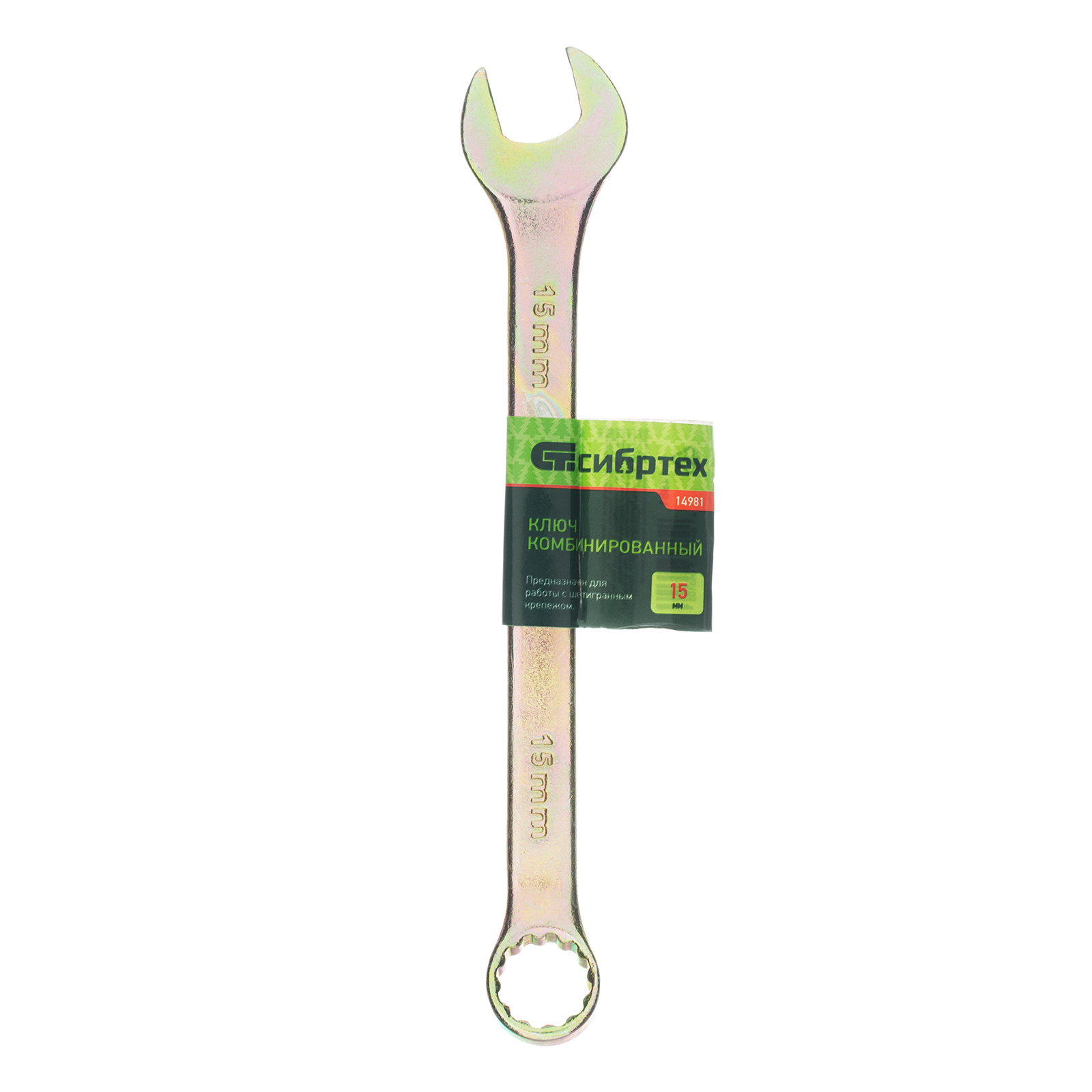 Ключ комбинированный, 15 мм, желтый цинк Сибртех в Екатеринбурге