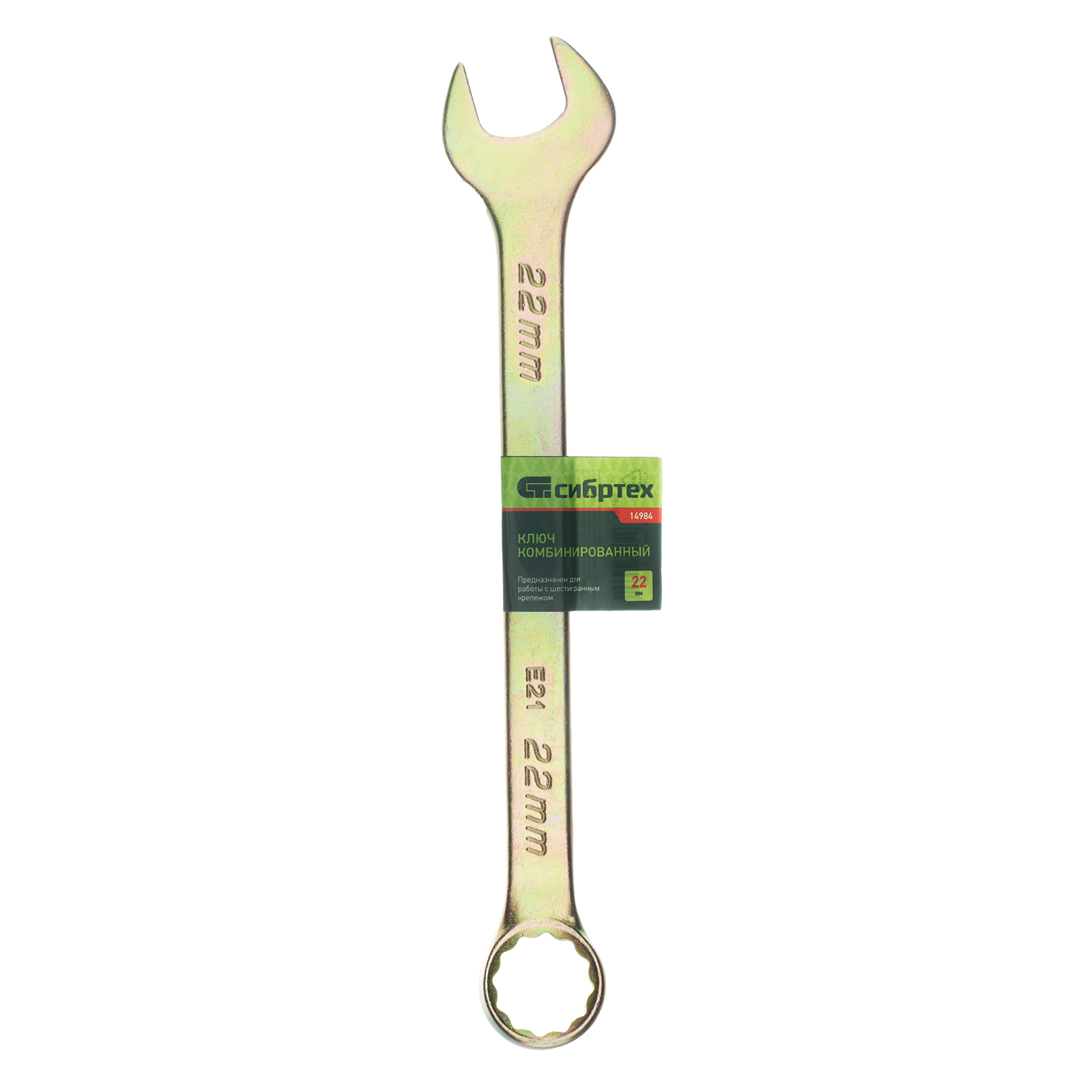 Ключ комбинированный, 22 мм, желтый цинк Сибртех в Екатеринбурге