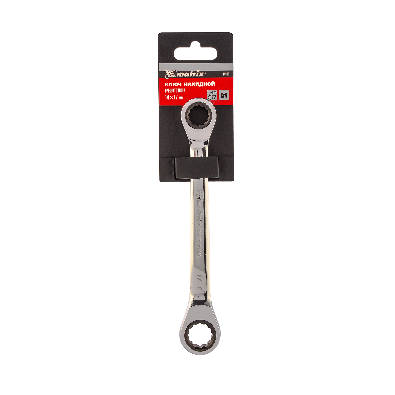 Ключ накидной трещоточный, 14 x 17 мм, CrV, зеркальный хром Matrix в Екатеринбурге