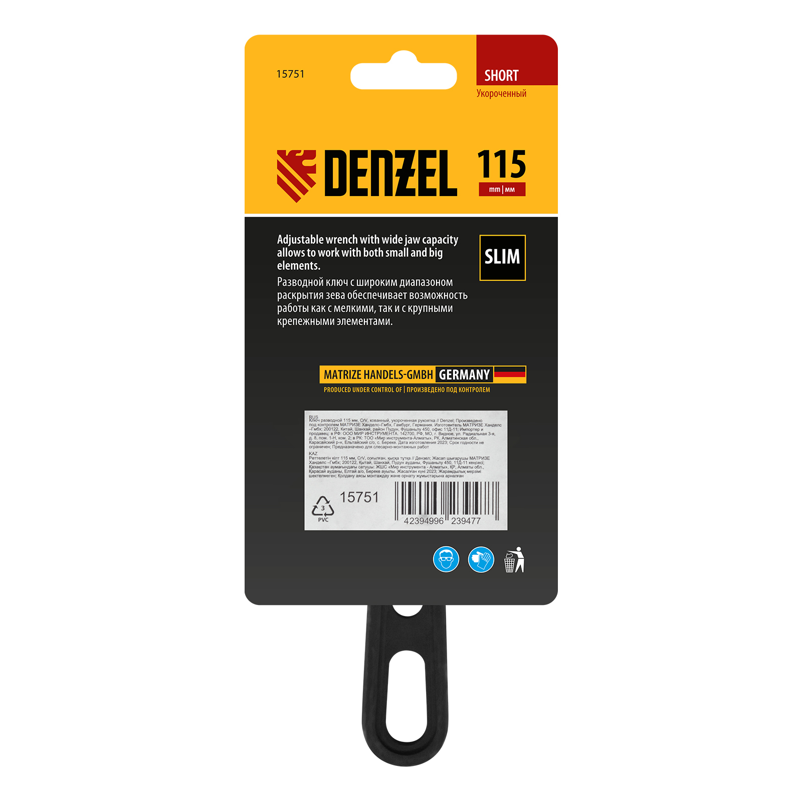 Ключ разводной 115 мм, CrV, кованый, укороченная рукоятка Denzel в Екатеринбурге