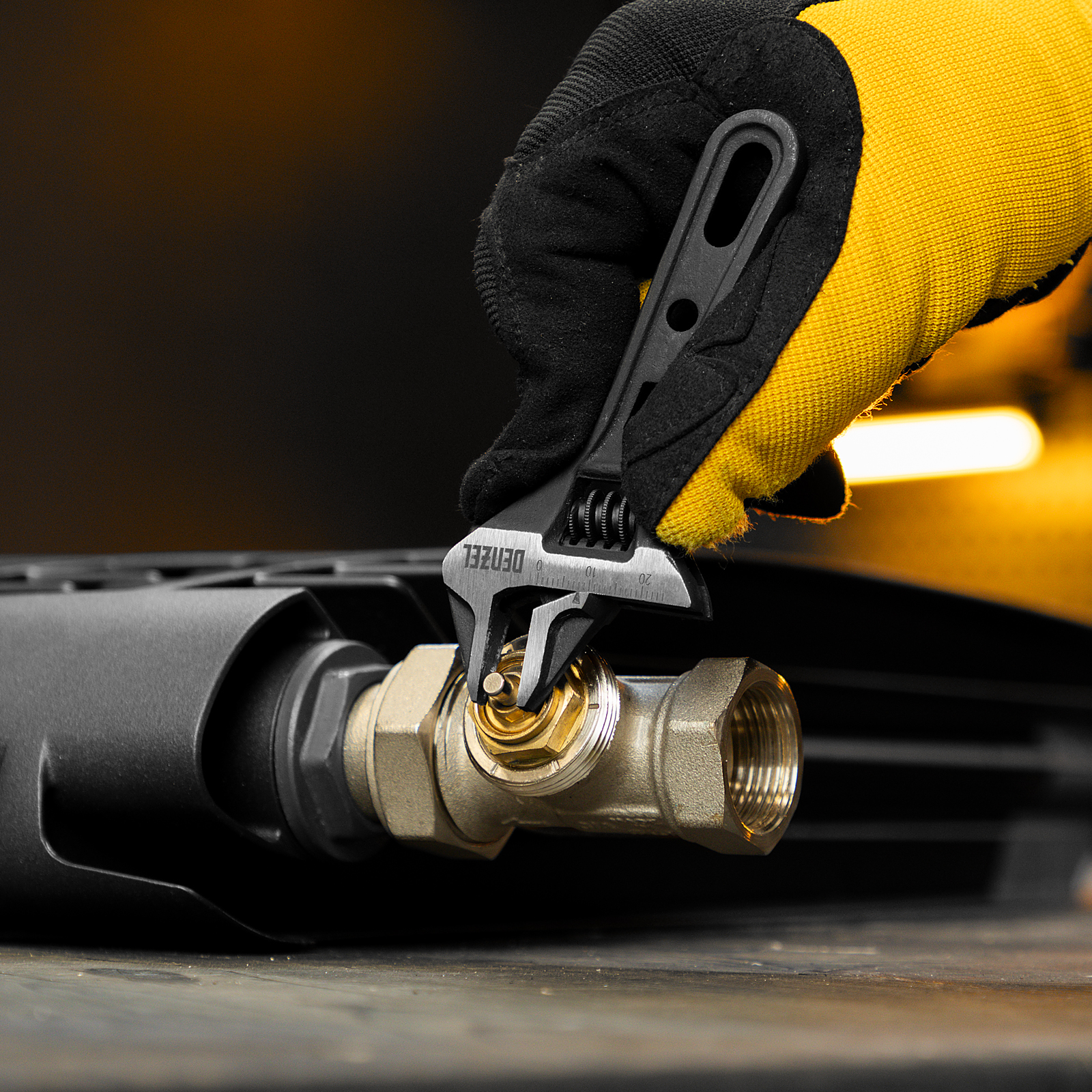 - Удобная эксплуатация — метрическая линейка на ключе помогает выставить нужный размах зева.