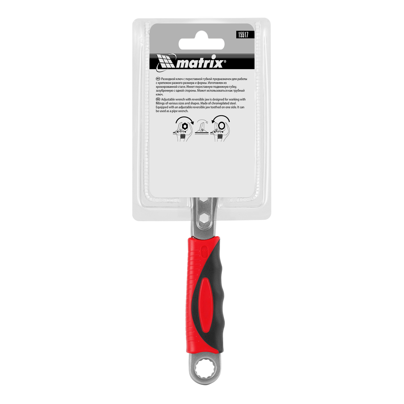 Ключ разводной, 200 мм, переставная губка, двухкомпонентная рукоятка Matrix в Екатеринбурге