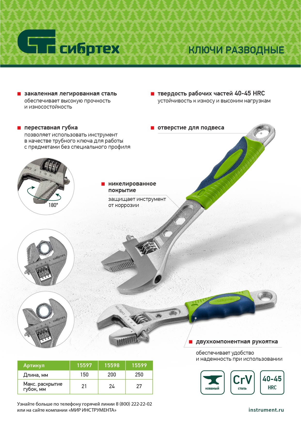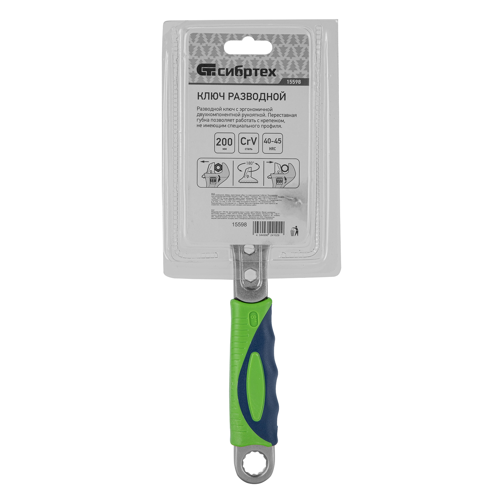 Ключ разводной, 200мм, переставная губка, 2-х комп.рукоятка Сибртех в Екатеринбурге