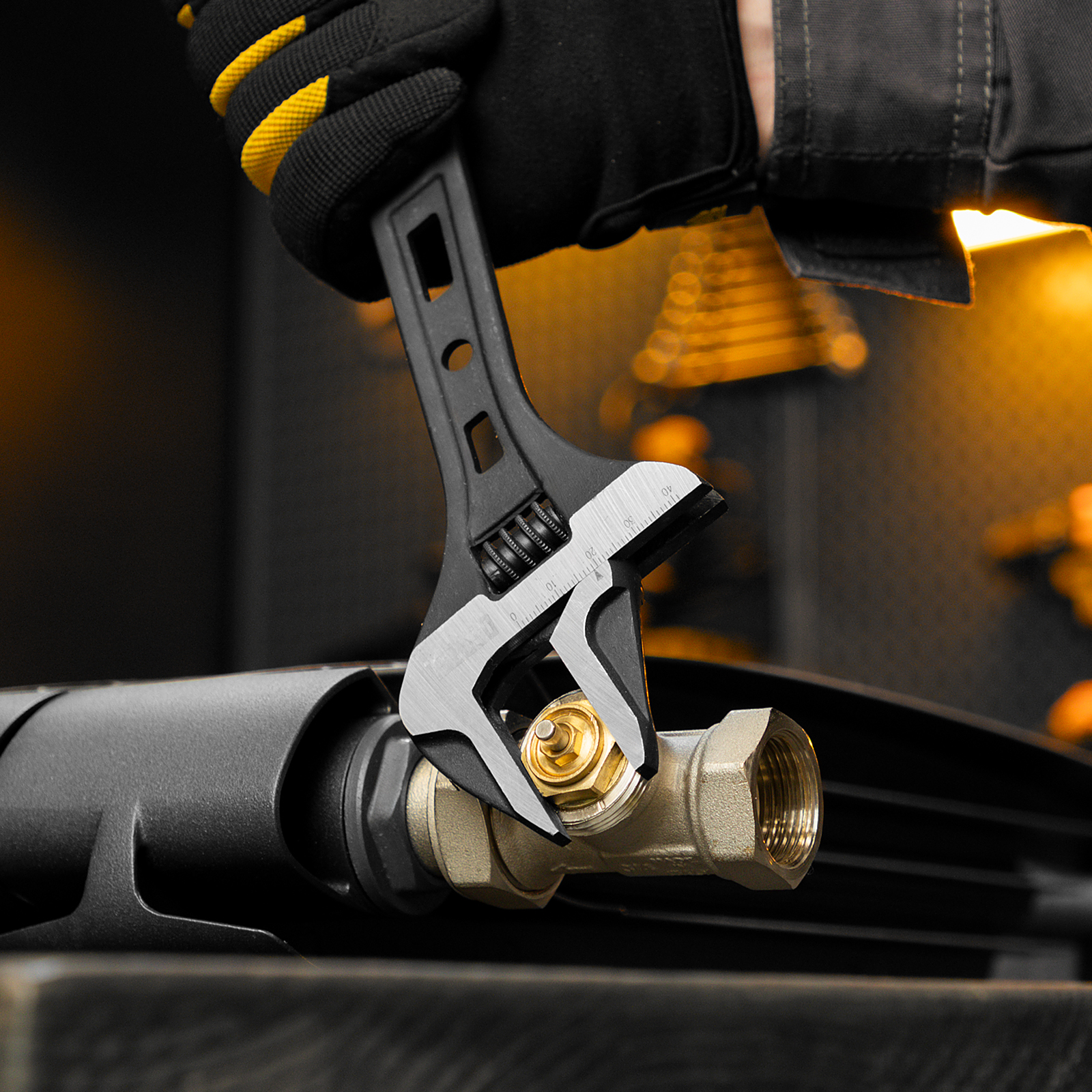 - Удобная эксплуатация — метрическая линейка на ключе помогает выставить нужный размах зева.