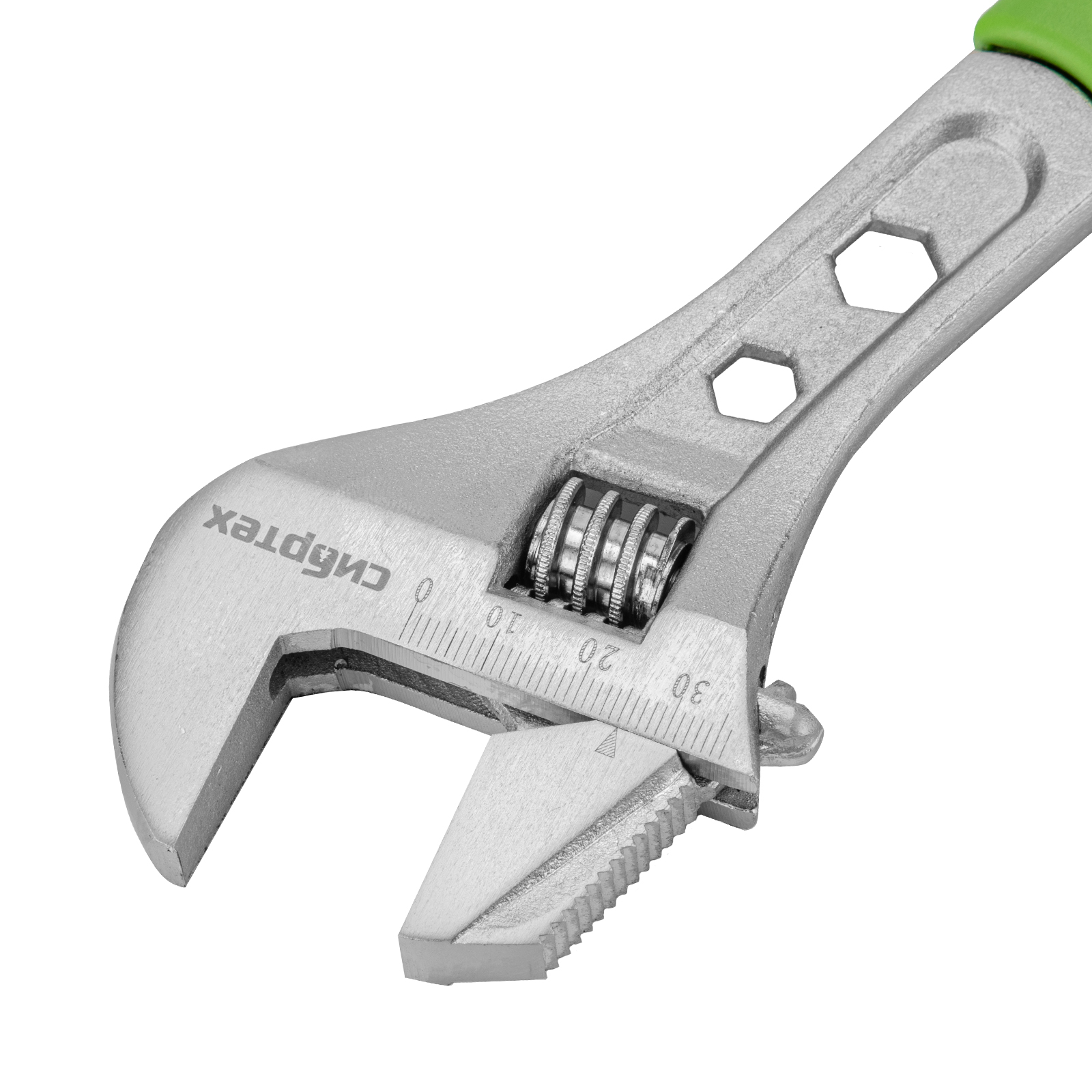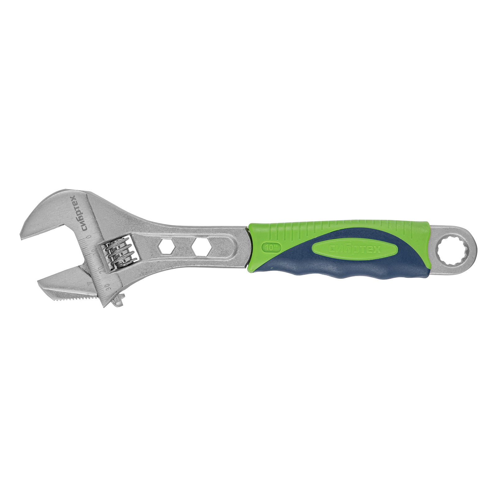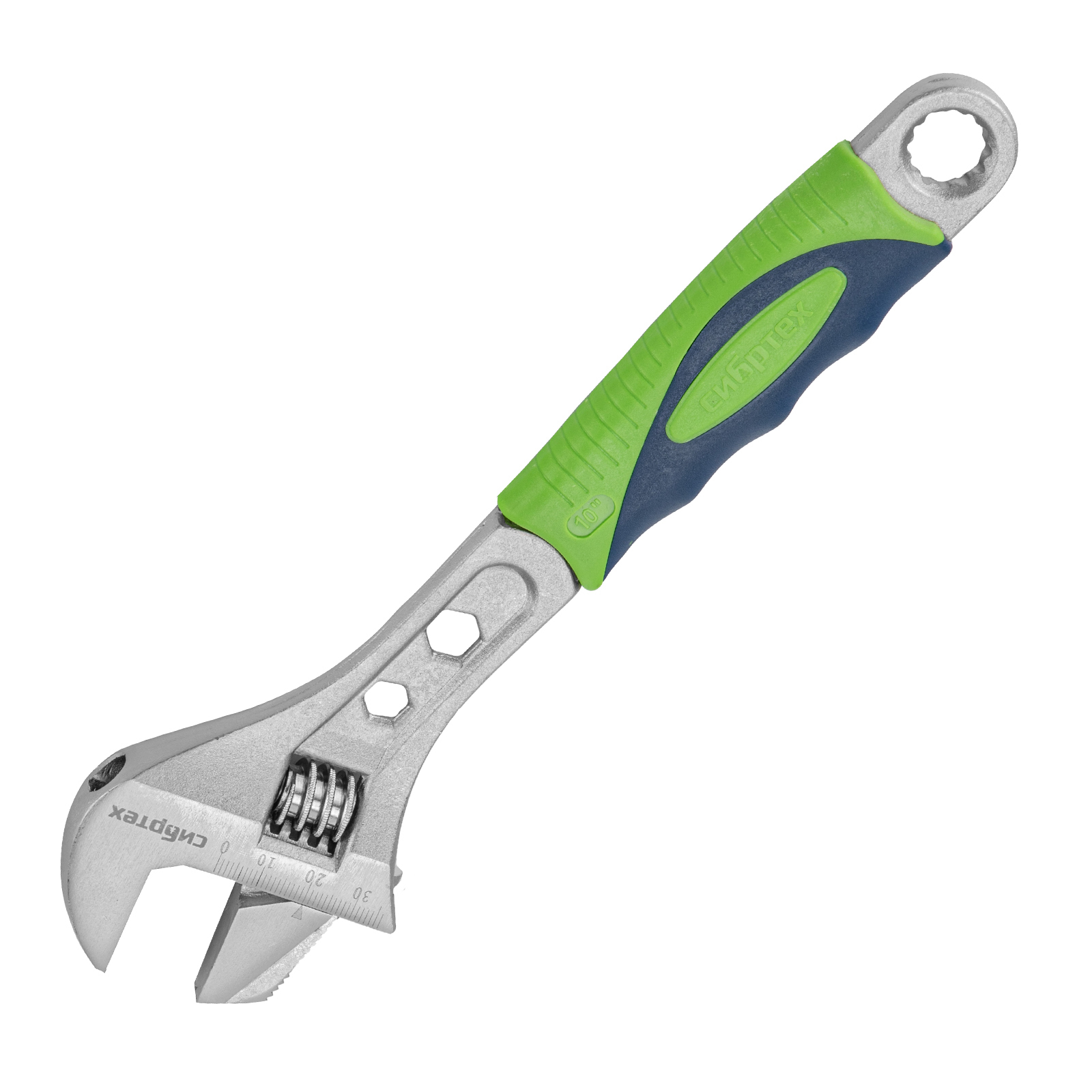Разводной ключ Сибртех 15599 длиной 250 мм, с переставной губкой и двухкомпонентной рукояткой, предназначен для выполнения монтажных работ. Позволяет справляться с болтами разного размера и способен заменить целый арсенал гаечных ключей. Переставная губка с зазубринами позволяет использовать ключ для работы предметами без специального профиля, например, трубами.