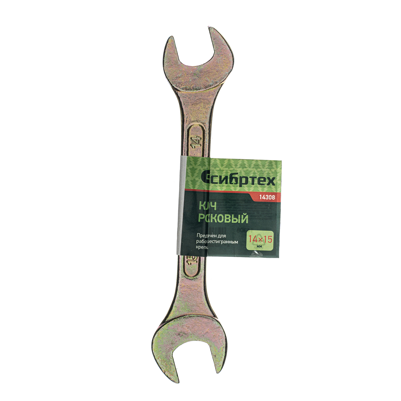 Ключ рожковый, 14 х 15 мм, желтый цинк Сибртех в Екатеринбурге