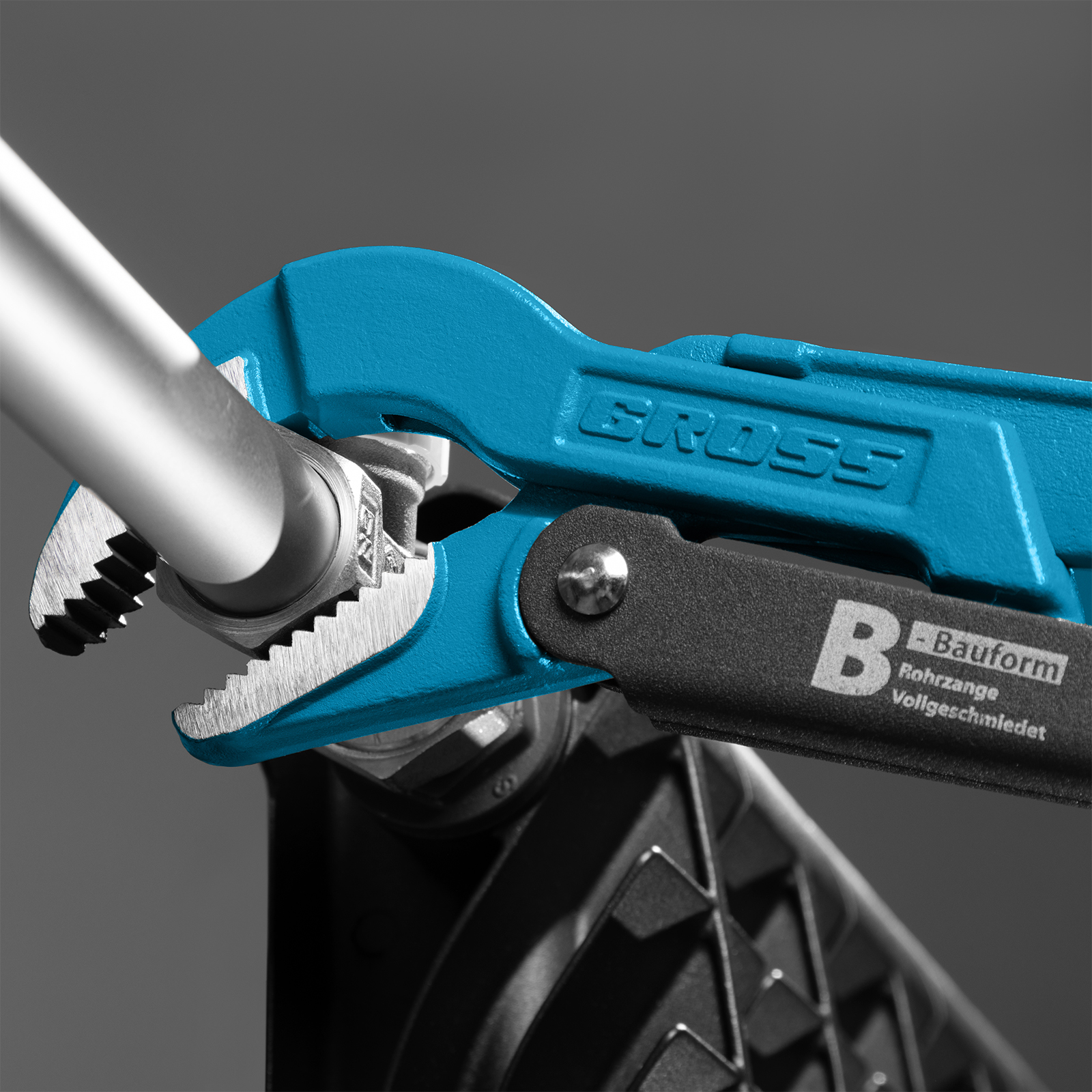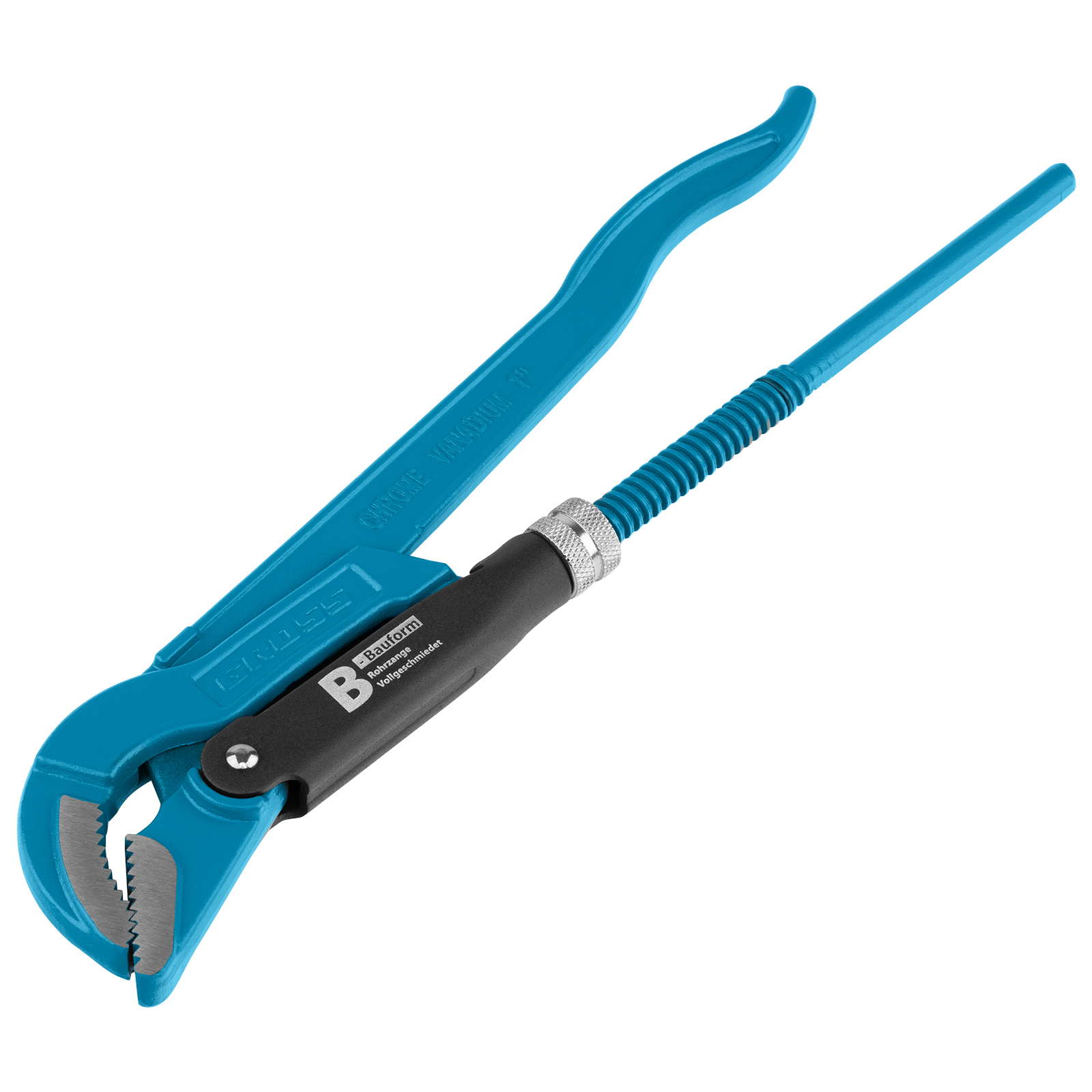 - Высокая прочность — цельнокованый корпус изготовлен из хромованадиевой стали, а губки закалены до твердости 57-60 HRC.