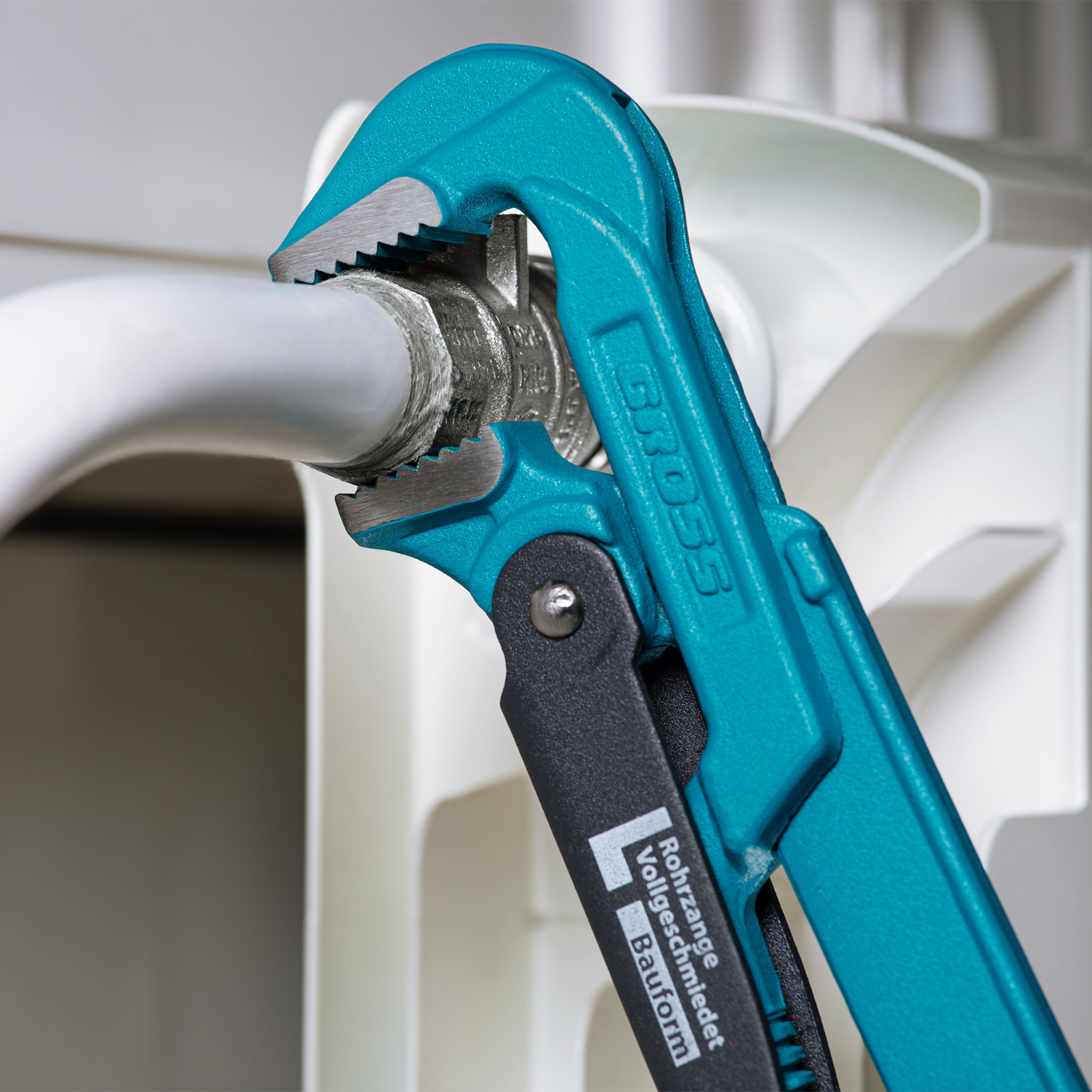 - Самоблокируемый захват труб и деталей — зубья прогрессивной формы наклонены против направления вращения.