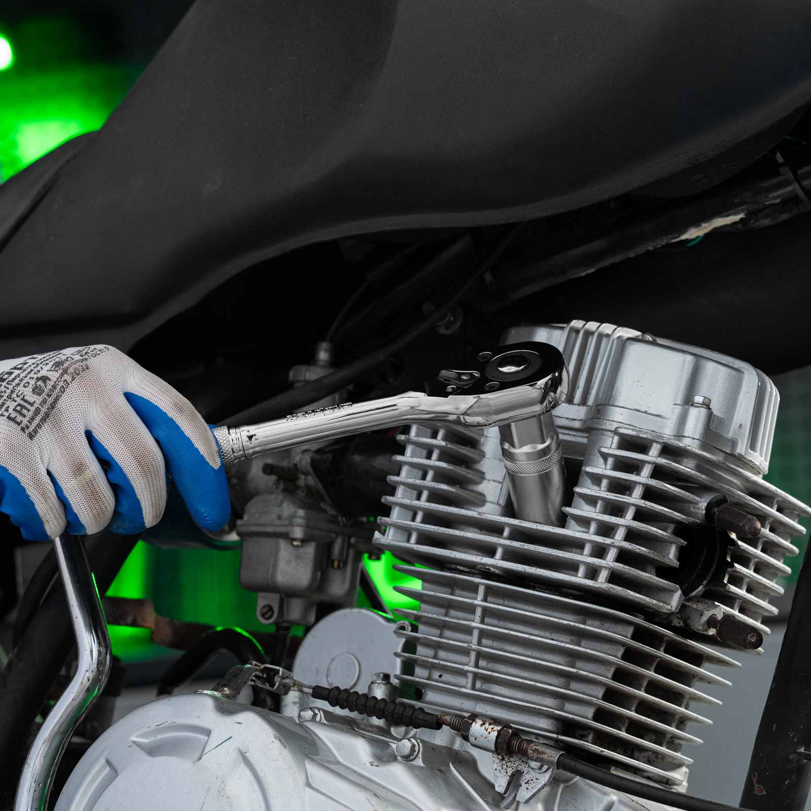 - Надежная фиксация — шариковый замок крепко удерживает торцевую головку, поэтому она не соскочит во время работы.