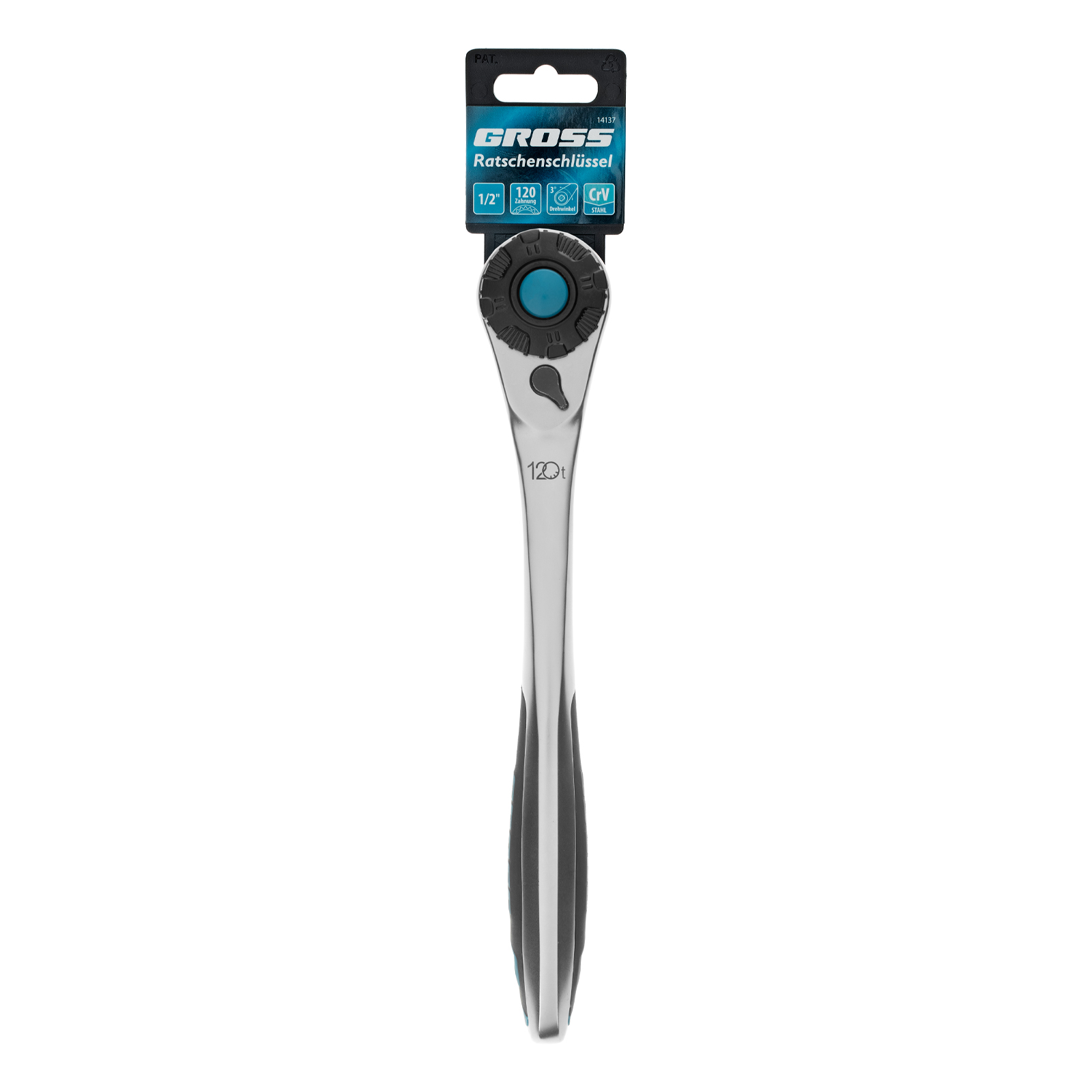 Ключ-трещотка 1/2", CrV, 120 зубьев, с быстрым сбросом, цельнометаллический, хром Gross в Екатеринбурге