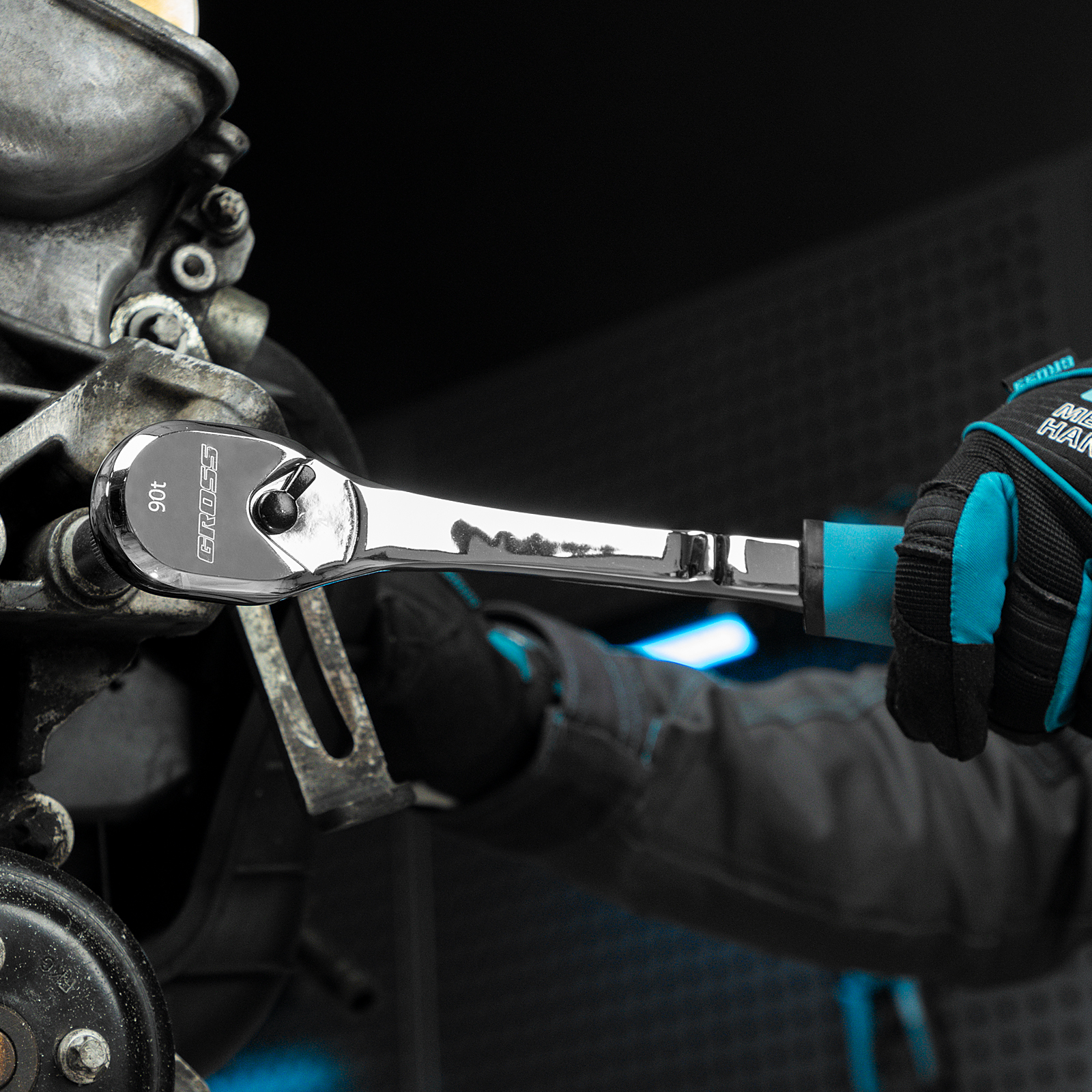 Усиленный ключ-трещотка Gross 14055 с присоединительным квадратом 1/2" оснащен храповым механизмом с 90 зубьями. Предназначен для установки торцевых головок, а также адаптеров и удлинителей с посадочным отверстием соответствующего размера. Шаг храпового механизма составляет 4°, поэтому инструмент оптимален для использования в труднодоступных местах. Будет полезен в сервисном центре, на СТО, а также пригодится дома или в поездке.