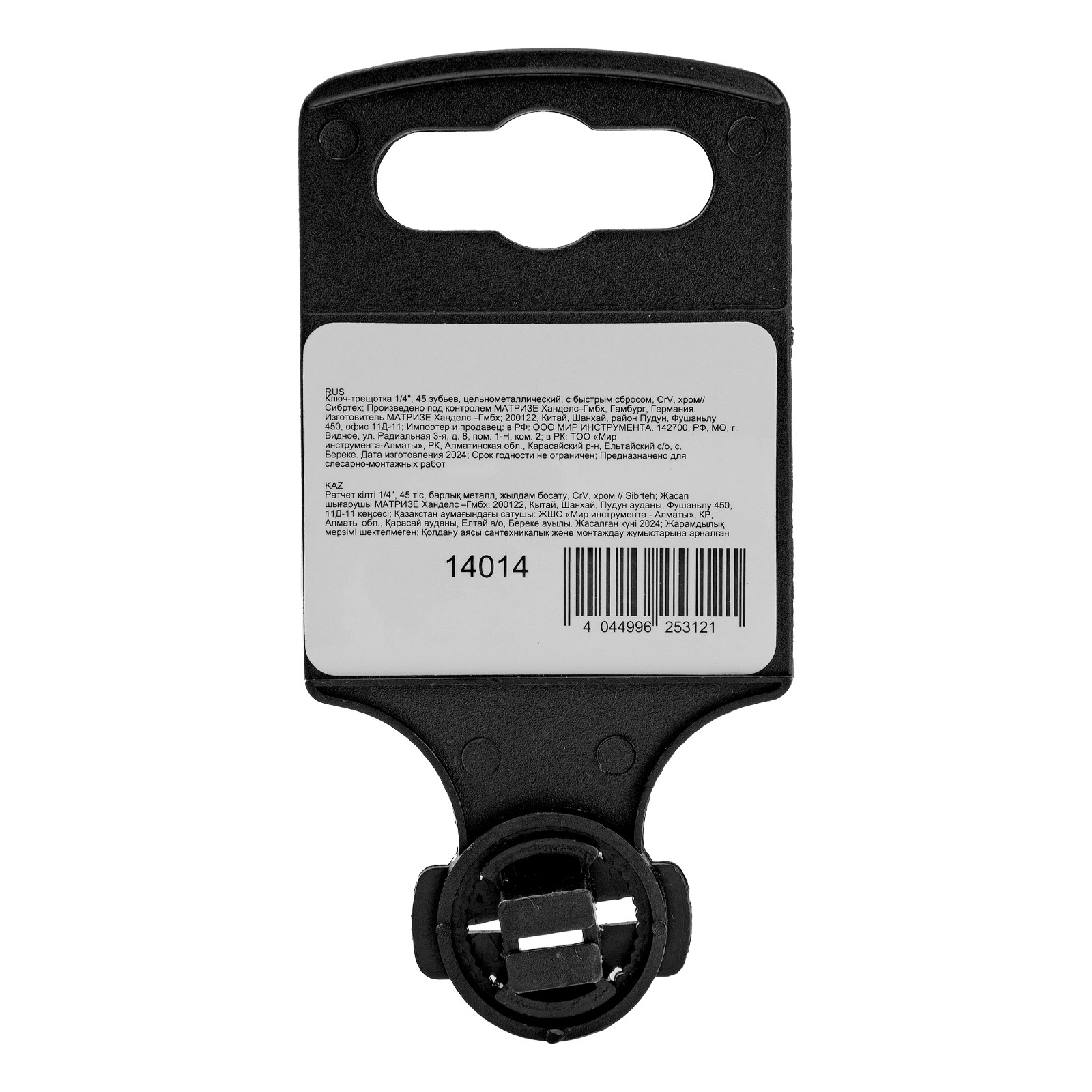 Цельнометаллический хромированный ключ-трещотка Сибртех 14014 из стали CrV, с посадочным размером 1/4″ и 45-зубым храповым механизмом, с функцией быстрого сброса, используется для монтажа и демонтажа резьбовых соединений. Предназначен для установки торцевых головок, адаптеров и удлинителей. Цельнометаллическая конструкция отличается повышенной прочностью, что позволяет работать со значительным усилием. Инструмент пригодится дома, в гараже и в поездке.